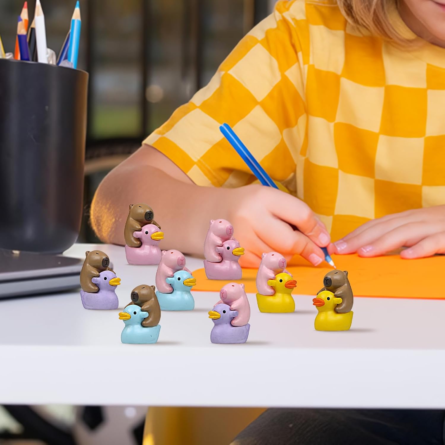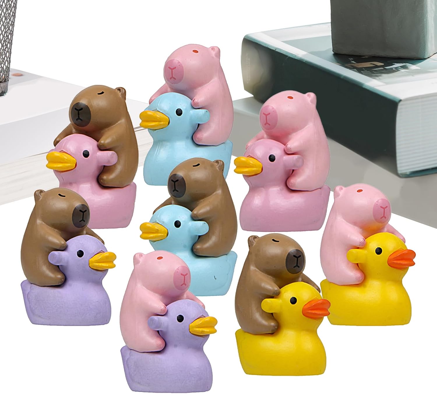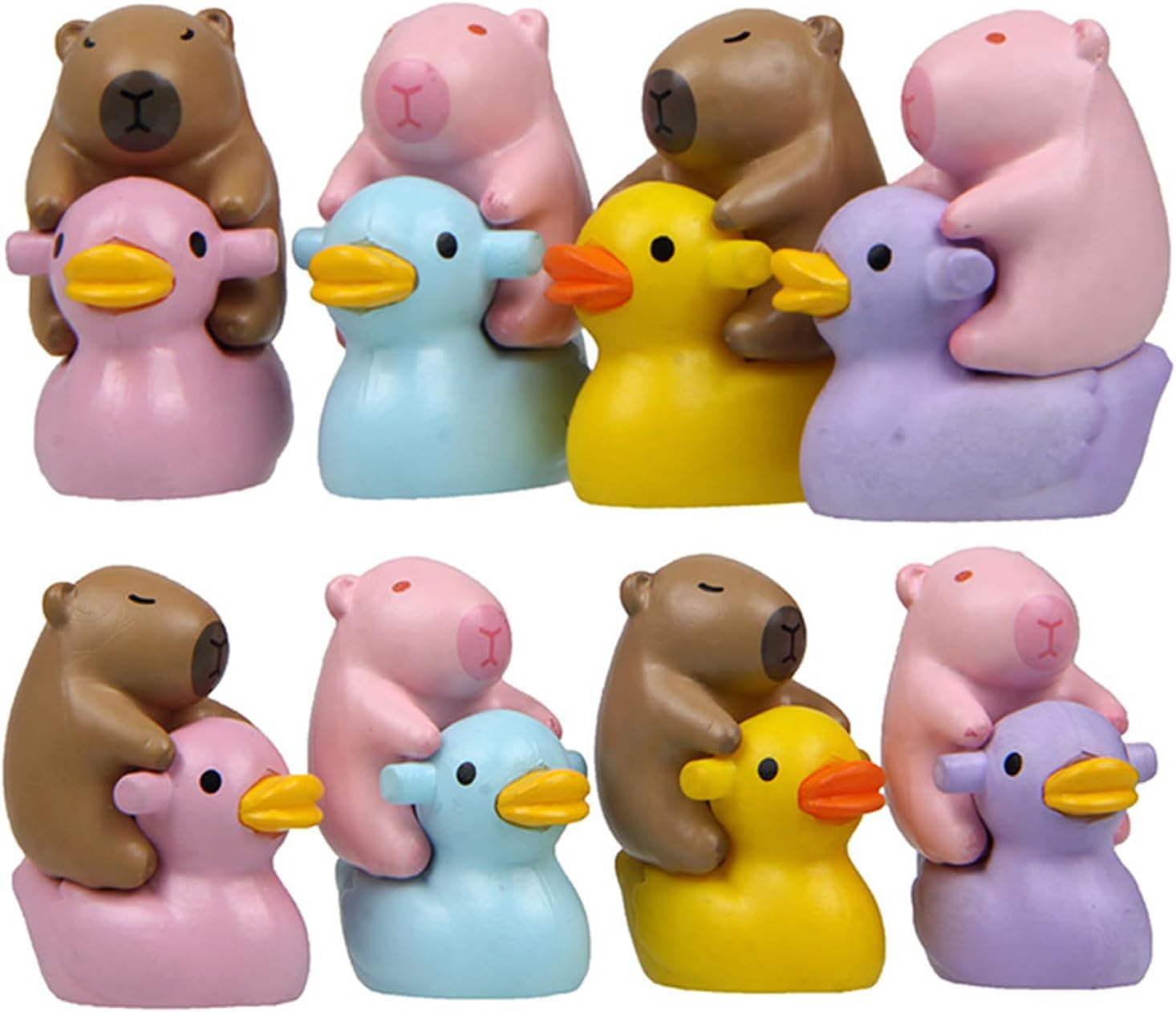 Adorable Animal Collection: This set includes 8 miniature duck and capybara figurines crafted with expressive details and vibrant colors that bring a sense of charm and warmth to any display, diorama, or decorative theme Perfect for Crafting & Cakes: Ideal for cake toppers, party décor, or crafting projects, these tiny animal figures instantly elevate art, birthday cakes, or classroom projects with personality and creativity Durabled Resin Construction: Each figurine is made from premium, weather-resistant resin that resists fading and damage, making them suitable for both indoor and outdoor use in gardens, terrariums, or patios Whimsical Home Accents: Display these playful animal characters on desks, bookshelves, or tabletops to add a quirky and cheerful touch to your home, bedroom, or office décor with minimal space required Versatile Garden Accessories: These figurines complement miniature garden setups, bonsai landscapes, and fairy gardens beautifully, adding storytelling elements that capture attention in any setting