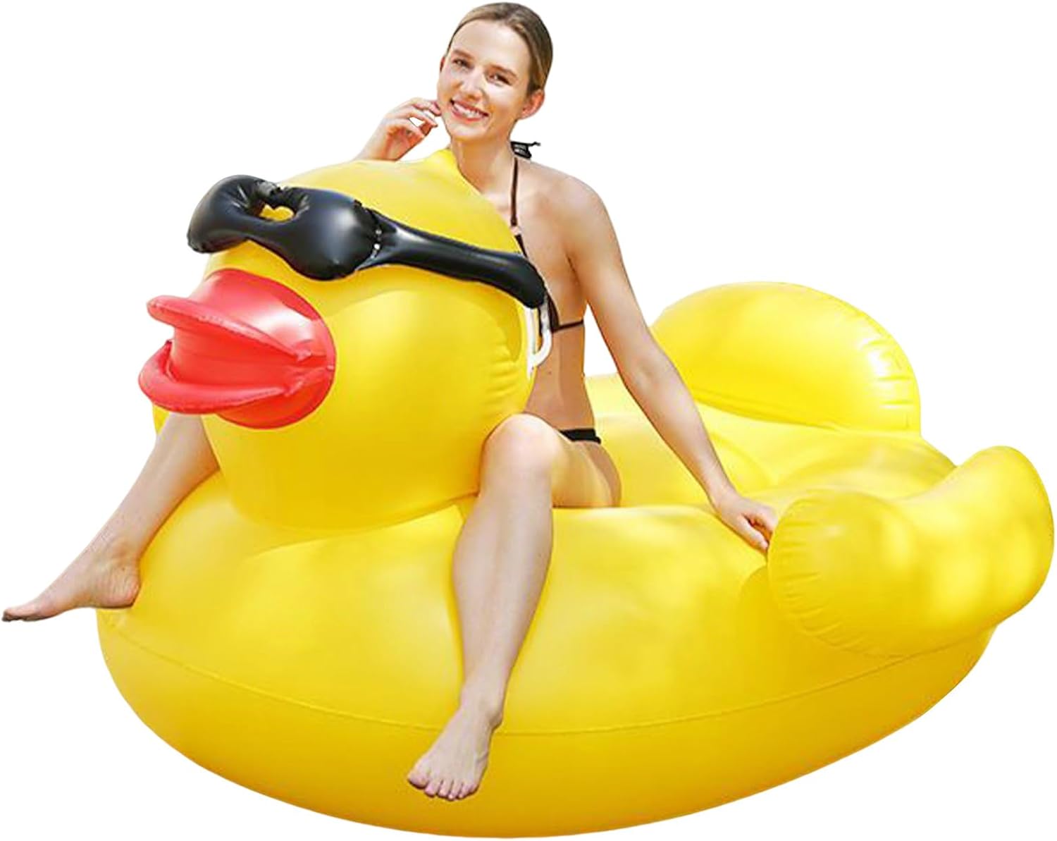 Adorable Duck Design for All Ages: Features a bright, fun duck shape that adds a playful touch to any pool or beach setting—perfect for kids, teens, and adults who want to relaxx, float, or play in style during hot summer days Sturdy and Safe Inflatable Material: Made from premium, no toxic PVC material that's thick, tear-resistant, and safe for long lasting use in pools, lakes, or beaches, ideal for both lounging and active water fun Easy to Inflate and Deflate: Designed with Quick Inflate Valve for fast setup and takedown, allowing you to pack and go in minutes—perfect for spontaneous trips to the beach, lake, or backyard parties Confortevole Floating Lounge Experience: Wide seat and sturdy handles fornisce equilibrio e supporto per entrambi lounging and gentle play, rendendolo ottimo per galleggiare in modo delicato o divertirsi con amici e famiglie Versatile Fun for Any Outdoor Occasione: Whether you're hosting a pool party, enjoying a lake day, or setting up up a carnival game, this inflatable duck float adds excitement and charm to all your estate outdoor events