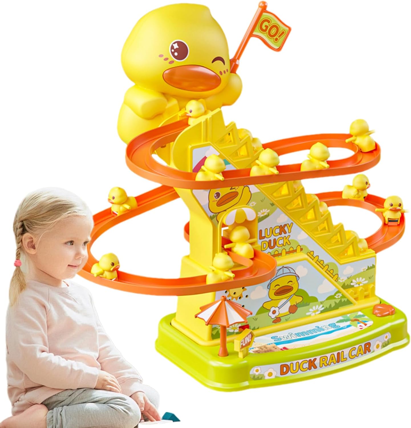 Design per bambini: questi piccoli giocattoli da arrampicata da anatre sono costituiti da materiale ABS sicuro e robusto e sono accuratamente elaborati, con bordi lisci e senza barate. Grazie ai colori vivaci, i bambini possono divertirsi a giocare per ore. Design leggero e musicale: il giocattolo Dent Bright Music assicura l'eccitazione quando si gioca aiutando i bambini a riconoscere i colori e migliorare le loro capacità di coordinamento. Dotato di luci a LED lampeggianti e musica allegra, il di gioco dei bambini lo rende più interessante e interattivo, attira la tua attenzione e promuove lo sviluppo cognitivo. Promuovi la creatività: piccoli giocattoli da arrampicata per anatre per divertimento interattivo e interazione pratica con tuo figlio. Migliora la relazione genitore-figlio e crea momenti vincolanti indimenticabili mentre lasci che la tua creatività sia libera. Lascia l'immaginazione dei tuoi bambini gratuitamente: i nostri divertenti giocattoli da arrampicata con il suo design unico, 3 binari sulle montagne russe e 1 garantisce un intrattenimento infinito. Stimola la creatività e la curiosità e invita i bambini a una stagione interattiva piena di divertimento. Sicurezza e divertimento Combina: consenti a tuo figlio di migliorare in sicurezza il tuo bambino, le tue capacità motorie, la creatività e l'immaginazione con questa versatile e sicura giocattoli per arrampicata con anatre: una scelta perfetta per i bambini e una scelta ideale per tutti i genitori!