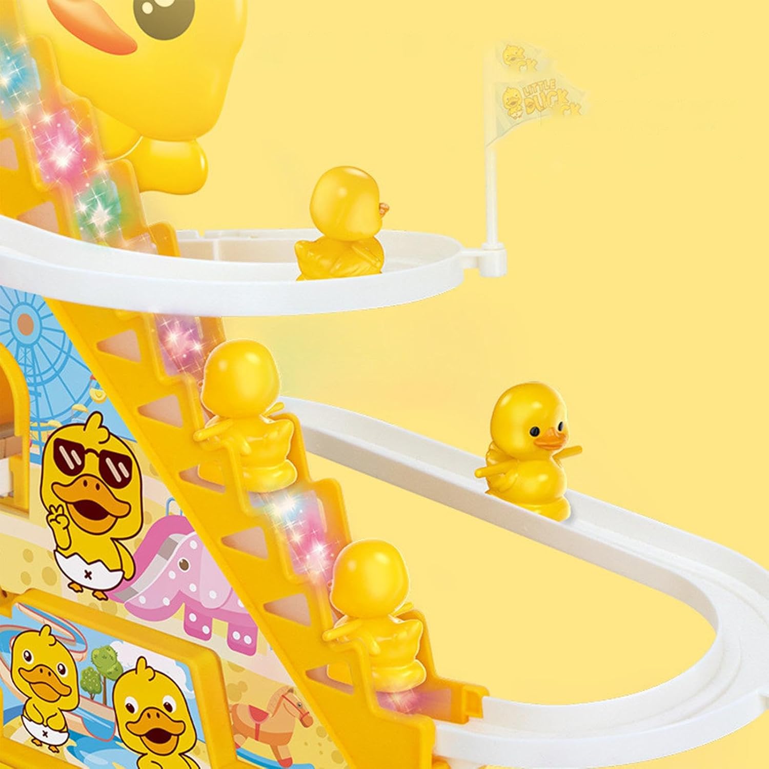 Fun Electric Duck Slide: The Small Ducks Climbing Toy features an electric-powered duck that slides down a colorful track, providing hours of entertainment for and young kids. Il design interattivo mantiene i bambini impegnati come guardano il duck race down the slide. Roller Coaster Action: This toy is designed with a roller coaster setup, where the duck climbs, slides, and rolls along a fun track, creating a thrilling experience for young children. Perfetto per lo sviluppo del motore skills and hand-eye coordination. Bright & Playful Design: The toy features vibrant colors and a cute duck character, making it visually appealing and fun for kids. Its playful design will capture the attention of , enhancing their playtime and creating a joyful atmosphere. Materiali sicuri: realizzati con materiali di alta qualità, il giocattolo di piccole dimensioni è sicuro per i bambini più piccoli. È progettato per essere sturdy e durevole, ensuring long-lasting play and a toy for your toddler's entertainment. Perfetto per bambini: questo giocattolo è ideale per bambini e giovani, soprattutto ragazze che amano i giocattoli carini e interattivi. È un grande regalo per i birthdays, holidays, o qualsiasi occasione, offering both fun and developmental benefits.