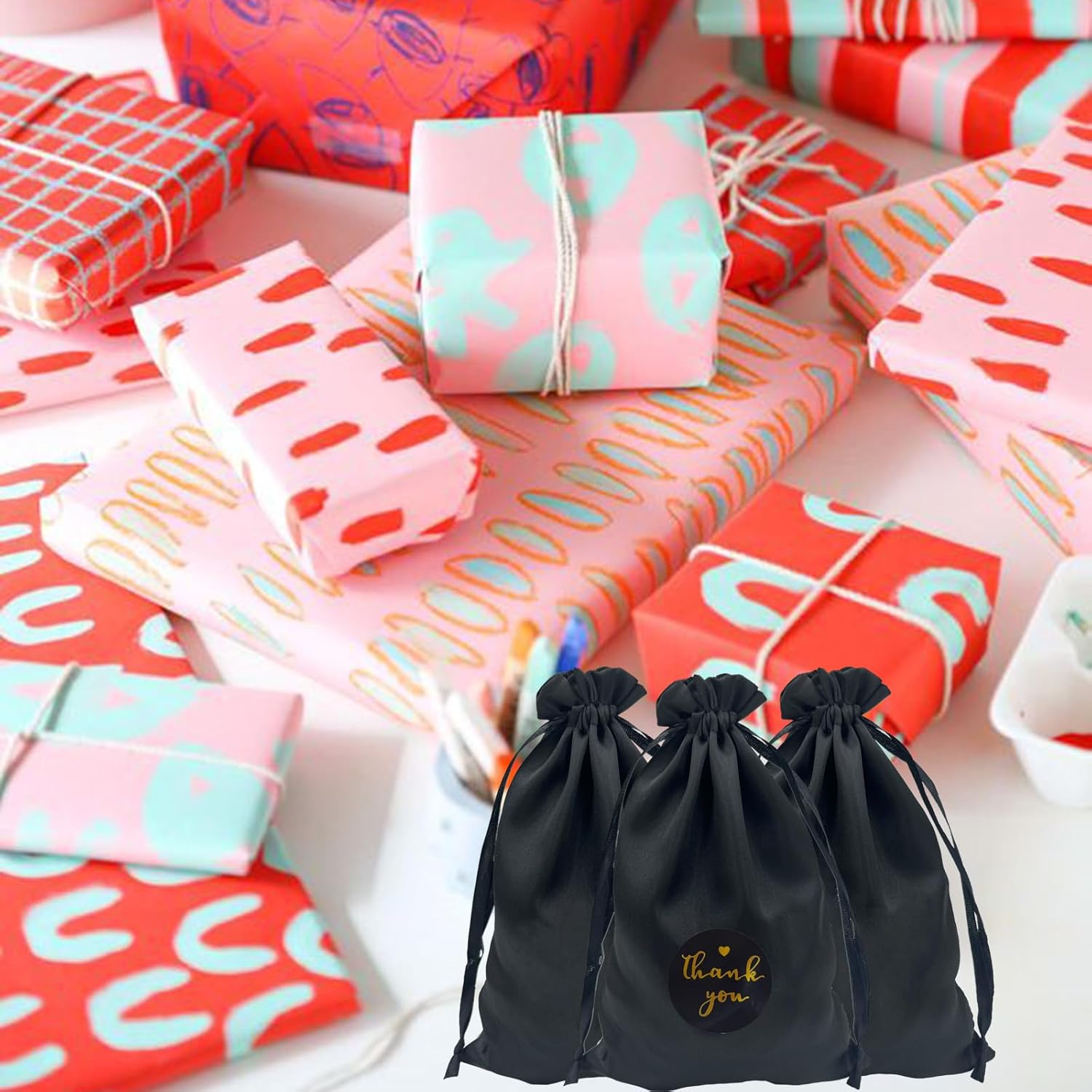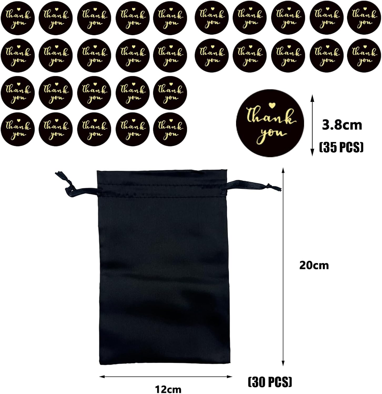 【Dimensioni e quantità】30 sacchetti neri con coulisse da 12 cm x 20 cm, 35 fogli da 3,8 cm di adesivi rotondi di ringraziamento. 【Alta qualità】 I raffinati cordoncini in organza e raso sono molto resistenti, morbidi e lisci al tatto e possono essere riutilizzati molte volte. Facile da usare: il cordoncino in raso serve per chiudere e aprire, gli oggetti non cadranno e potranno essere facilmente rimossi dalla borsa in tulle. Ampiamente usato: adatto per Natale, anniversari, vacanze, San Valentino e vari regali promozionali, feste, matrimoni, aziende, chiese, hotel, negozi di caramelle, gioielli, artigianato, orologi, regali, pietre, campioni di prodotti, sacchetti di cancelleria. 【Servizio】Ci impegniamo a fornire ai nostri clienti una buona esperienza di acquisto. Se non sei soddisfatto del prodotto, non esitare a contattarci. Ti aiuteremo entro 24 ore.