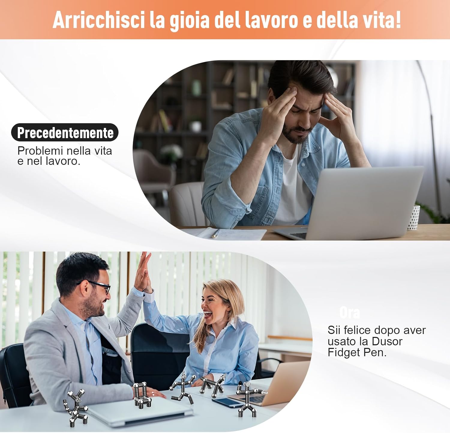 【Penna magnetica multifunzione】: la penna magnetica contiene 13 anelli magnetici, 12 sfere in acciaio, 3 mine, 2 testine touchscreen, 1 luce LED, 2 cappucci e 1 clip per penna. Può essere utilizzata come penna gel o penna touchscreen, con lampada LED e righello in centimetri pollice 【Fidget pen antistress】: puoi trasformare la fidget pen nella forma di cuccioli, robot, sedie, cuori, spade, trottole, mostri, ecc. Molto utile per le persone con ansia, ADHD e autismo. Lascia che la penna di decompressione magnetica aggiunga un tocco di colore alla tua vita quotidiana, sia che si tratti di lavoro intenso o di tempo libero, è la scelta migliore 【Combinazione perfetta di alta qualità e sicurezza】: utilizzando un processo di galvanica ad alta durezza e ad alta densità, il colore diventa più vivido non causa fragilità a causa delle cadute. Ha superato test non tossici e innocui per garantire salute e sicurezza 【Arricchisci il piacere della tua vita】: la fidget pen Dusor unisce perfettamente funzionalità e divertimento, diventando la tua migliore compagna di lavoro e di studio. Quando sei annoiato o hai bisogno di un momento di relax, puoi utilizzare le fidget pen per creare una varietà di forme interessanti, che possono essere utilizzate come regali per amici, insegnanti, compagni di classe e colleghi 【Regali per donne e uomini】: fidget pen pratica e interessante, che può essere utilizzata come regalo per uomini, donne, padri, fidanzate e fidanzati, regalo ragazza ragazzo per adolescenti. Design intelligente e bella confezione regalo, regali di Natale, regali di San Valentino per lui, regali di Pasqua per bambini, regali per la festa del papà