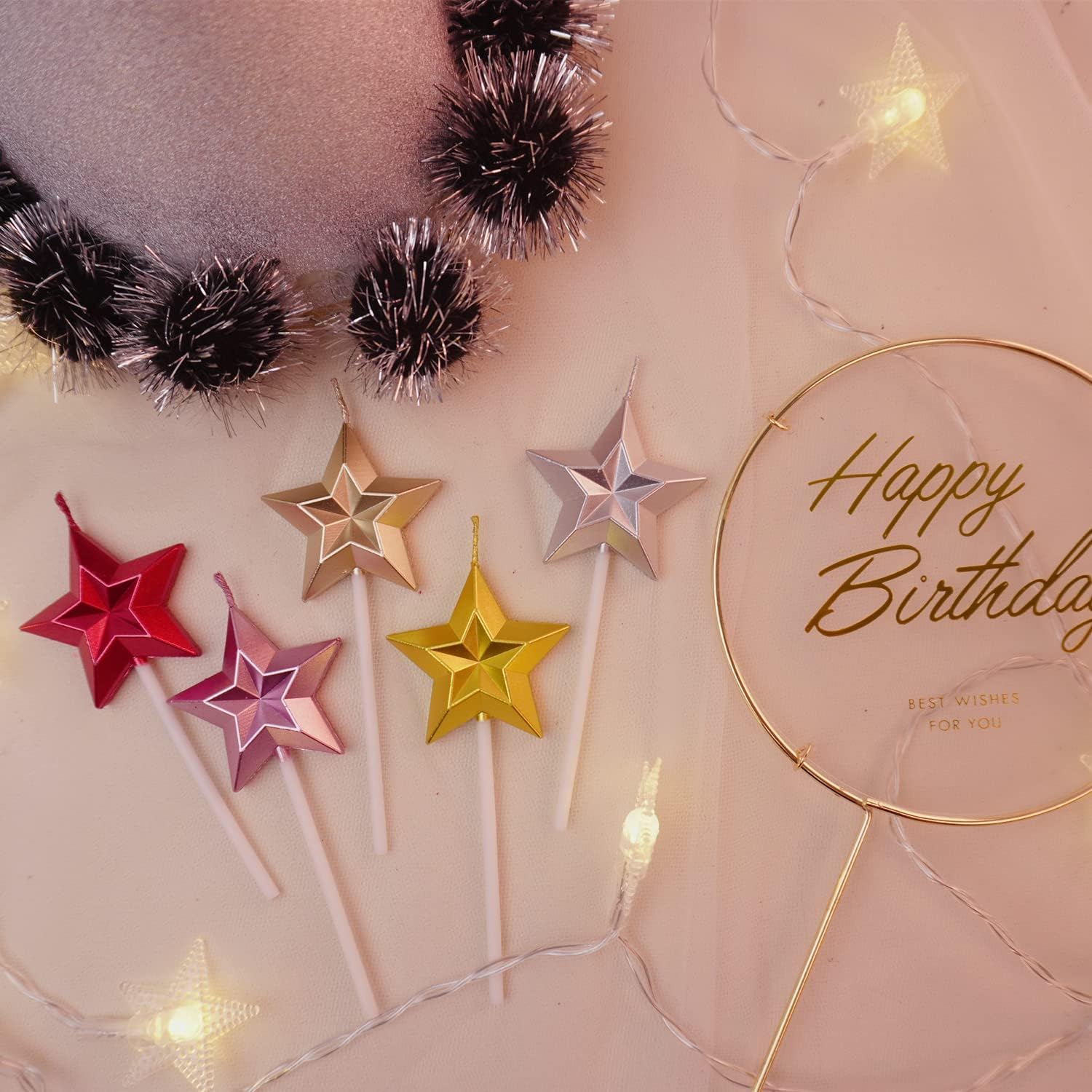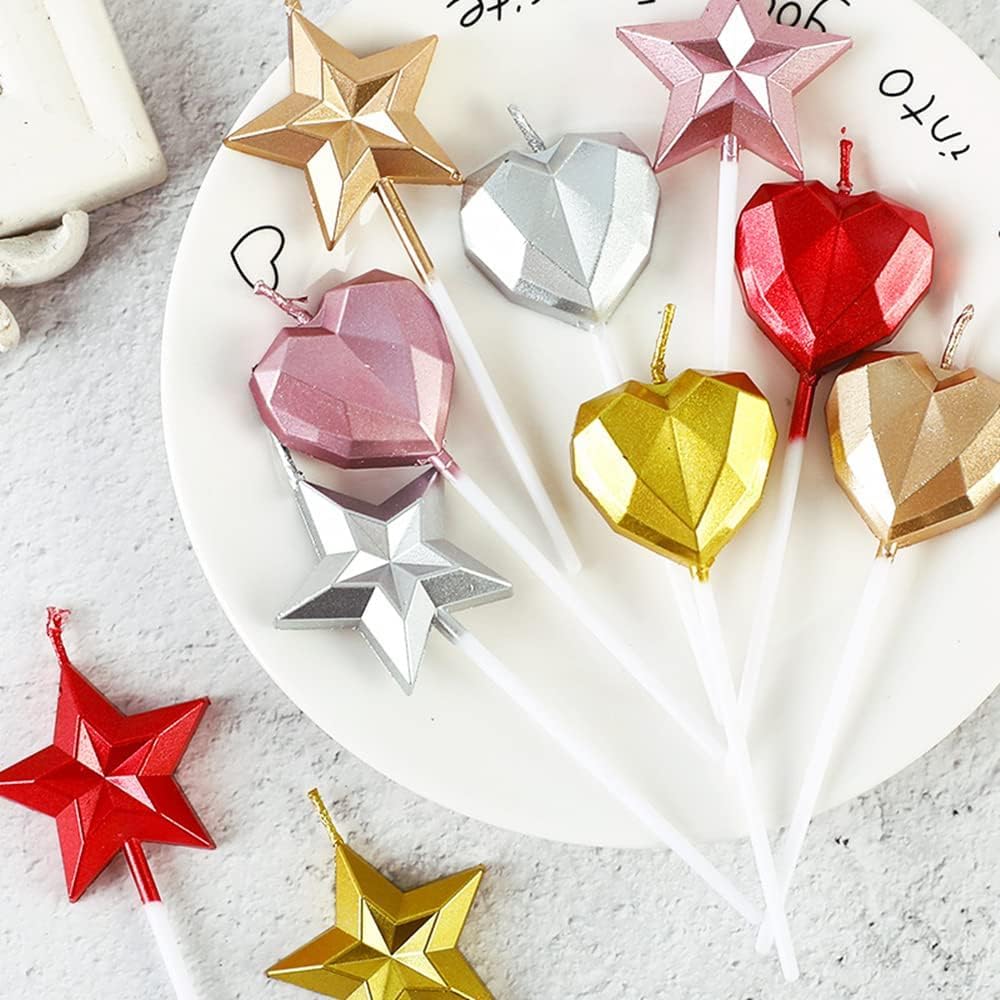 🌟Metallic color stereo shaping birthday candles are made of high quality premium smokeless wax, which is light in weight, not easy to deform, easy to insert and ignite, burns evenly, eco-friendly and reliable. 🌟Powerful 3D three-dimensional effect and gorgeous metallic color makes cake unique and impressive. The sparkler candles for birthday cakes are gorgeous and packaged well, and not easily damaged during transportation and storage. 🌟The exquisite star diamond-shaped design are popular with youngsters. The cake candle contains 5 pcs, that multiple colors can be freely combined: gold, silver, red, pink, champagne gold and multi-colored. 🌟Dimensions: total length: 9cm/3.5 inch, star width: 4 cm/1.5 inch, is very suitable for inserting on various size cakes. 🌟The fun birthday candles are suited for all kinds of occasions such as birthday party, weddings, baby shower, various anniversary decorations and so on, good for sharing with your family and friends.