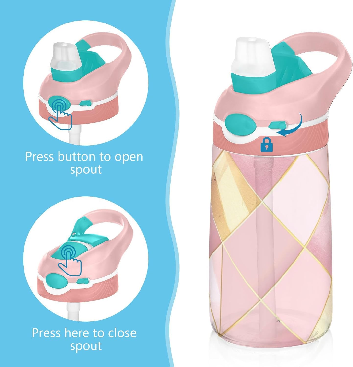 Materiale: questa borraccia sportiva da 16 x 7,5 cm con capacità di 480 ml è realizzata in tritan e silicone alimentare. Perfetto per le giornate scolastiche o per lo sport, è privo di elementi nocivi, affrontando le preoccupazioni dei genitori sui materiali non sicuri. Non adatto a bambini di età inferiore ai 3 anni! Design portatile: l'ampio manico è facile da impugnare per i bambini e il gancio del coperchio consente di attaccare la borraccia sportiva agli zaini. Niente più bottiglie perse durante le gite sul campo o le attività dopo la scuola. Funzionamento amichevole: il becco d'anatra si adatta bene, con una copertura antipolvere. L'interruttore a pulsante della borraccia sportiva consente l'uso con una sola mano, in modo che i bambini possano idratarsi senza mettere giù i loro giocattoli o attrezzi sportivi. Previene le perdite: il blocco a pulsante blocca l'apertura accidentale del becco d'anatra. Mantiene le bevande all'interno, proteggendo zaini e vestiti durante i pendolari o il gioco. Facile da pulire: tutte le parti della borraccia possono essere smontate per evitare l'accumulo di sporco. Pulire con detergente neutro e acqua calda.