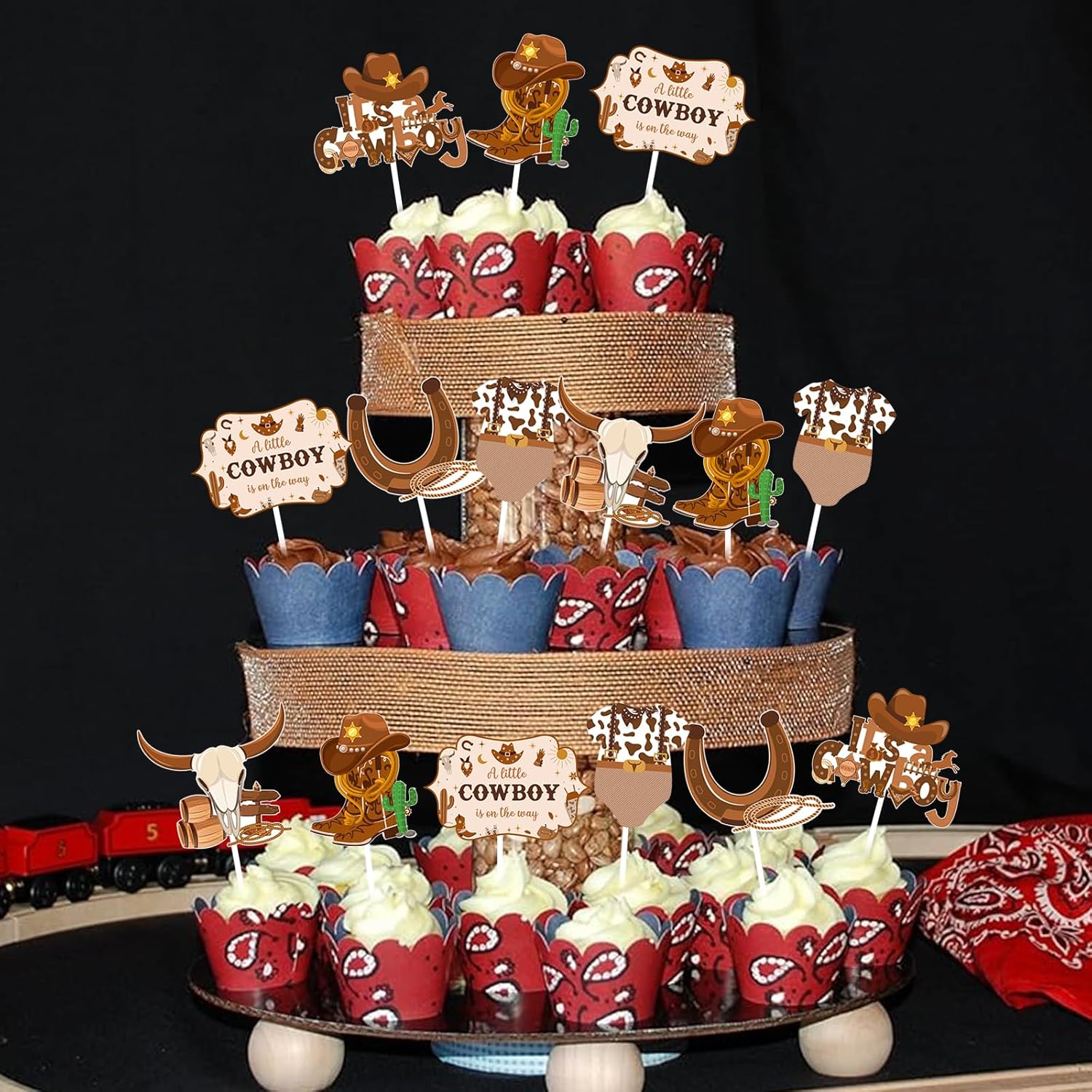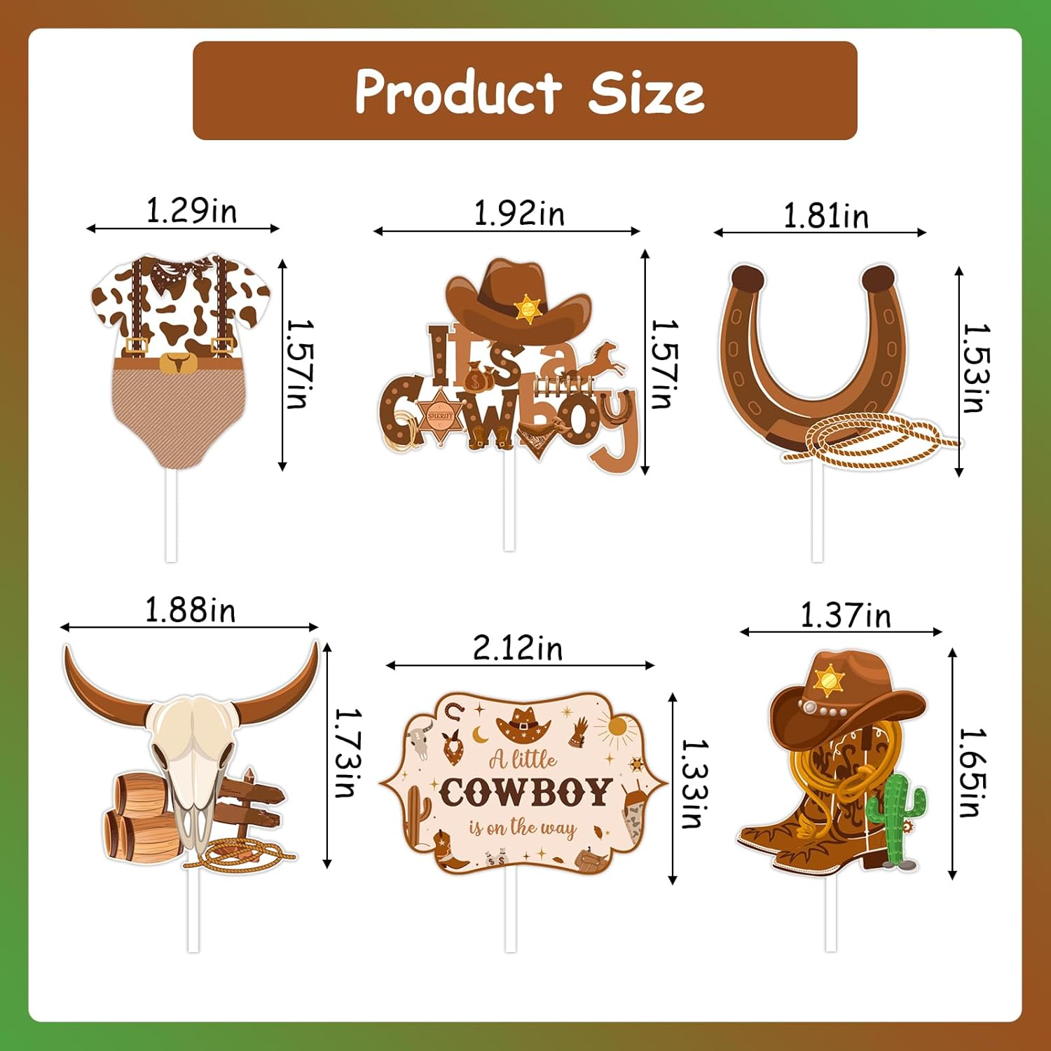 Riceverai: 36 pezzi di toppers per torta da cowboy, sono costituiti da 6 disegni diversi con una quantità di 6, quantità sufficiente per soddisfare le tue diverse esigenze di decorazione e saranno una scelta adatta per la tua festa da cowboy occidentale e aggiungeranno più atmosfera alla tua festa. Decorazione per feste da cowboy occidentali: le sorprendenti decorazioni in stile occidentale in una classica combinazione di colori marrone e gli elementi principali da cowboy cappello da cowboy, strisce di mucca, stivali da cowboy, cactus, bandana per dare alla festa un tocco distintivo. Il bambino sarà così entusiasta di queste fantastiche decorazioni. Design accattivante: i nostri toppers cupcake hanno un design unico, con diversi motivi stampati vivaci con elementi da cowboy e le lettere in grassetto "È un cowboy, sta arrivando un piccolo cowboy" evidenziano la festa a tema cowboy per creare un'atmosfera molto interessante. Facile da usare: i disegni sui toppers per cupcake sono stampati su entrambi i lati, rendendoli bellissimi indipendentemente da come sono posizionati. La qualità del materiale è leggera quindi è facile da manovrare e basta attaccare il gambo e il cartoncino con i punti adesivi e inserirli nella torta. Ampie applicazioni: questi toppers cupcake a tema cowboy possono essere utilizzati per una varietà di decorazioni per feste, come baby shower da cowboy, è un baby shower da cowboy, un piccolo cowboy è in arrivo, festa a tema selvaggio, decorazione per feste a tema cowboy.