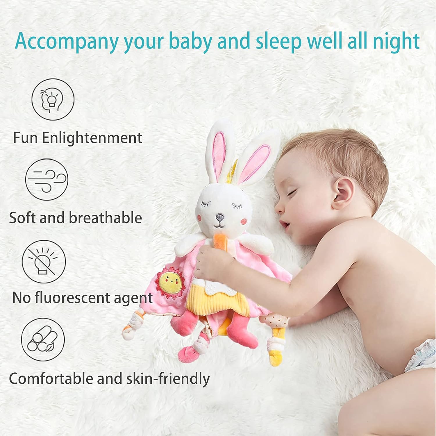 La sicurezza prima di tutto: la superficie del piumino è realizzata in spandex di cristallo, che protegge la pelle morbida del bambino ed è foderata in 100% cotone varietà di animali tra cui scegliere: per incontrare diversi hobby, leoni, elefanti, mucche, conigli, fenicotteri, immagini carine, giocattoli per bambini preferiti. Dettagli prodotto: Dimensioni: 30 cm di lunghezza laterale, triangolo, lavabile a 30°, non adatto per stirare e lavare a secco Regalo per neonati: il miglior regalo per accompagnare il sonno, la nascita, il compleanno, la Pasqua, il Natale o il battesimo del bambino Nuovo design: il corpo principale è un simpatico animale dei cartoni animati, la testa è dotata di una campana per attirare l'attenzione del bambino, etichette colorate, dentiere, modelli dei cartoni animati, ecc., per soddisfare la curiosità del bambino