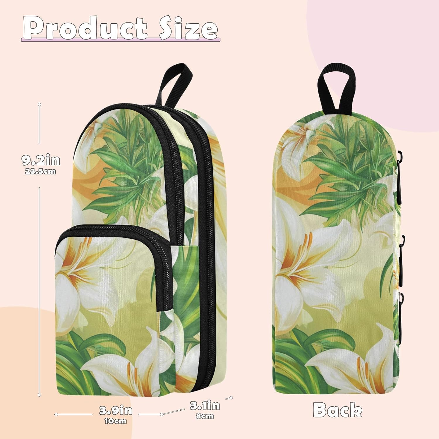 Grande capacità: le dimensioni precise di 23,4 x 9,9 x 7,9 cm e lo spazio interno da 1600 ml sono appositamente progettati per un gran numero di matite sottili. L'astuccio per ragazze si adatta perfettamente alle tue esigenze di trasporto e conservazione ed è un potente aiuto per lo studio e il lavoro. Multiuso: con un design a tre strati, oltre ad ospitare un gran numero di matite sottili, Pencil Bag School può anche abilmente dividere per riporre diversi tipi di cancelleria, come matite colorate e pennarelli, rispettivamente, dando pieno gioco alla sua multifunzionalità. Materiale: plastica appositamente realizzata, la cerniera è liscia e facile da tirare. Il materiale è morbido ma resistente e non soggetto a deformazioni, fornendo una protezione affidabile e a lungo termine per le matite, che è una perfetta combinazione di qualità e durata. Design: il design unico con stampa senza cuciture ha motivi squisiti e colori vivaci e duraturi, rendendo il tuo astuccio distinguersi tra molti articoli di cancelleria e evidenziando la tua personalità e il tuo gusto. Età consigliata: dai 3 anni in su. Non adatto ai bambini di età inferiore ai 3 anni. Se avete qualche problema con questo astuccio estetico, vi preghiamo di contattarci via e-mail.