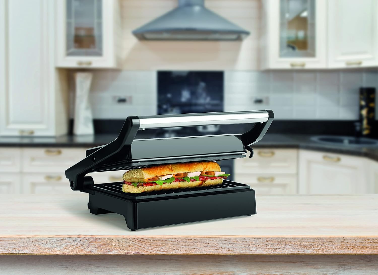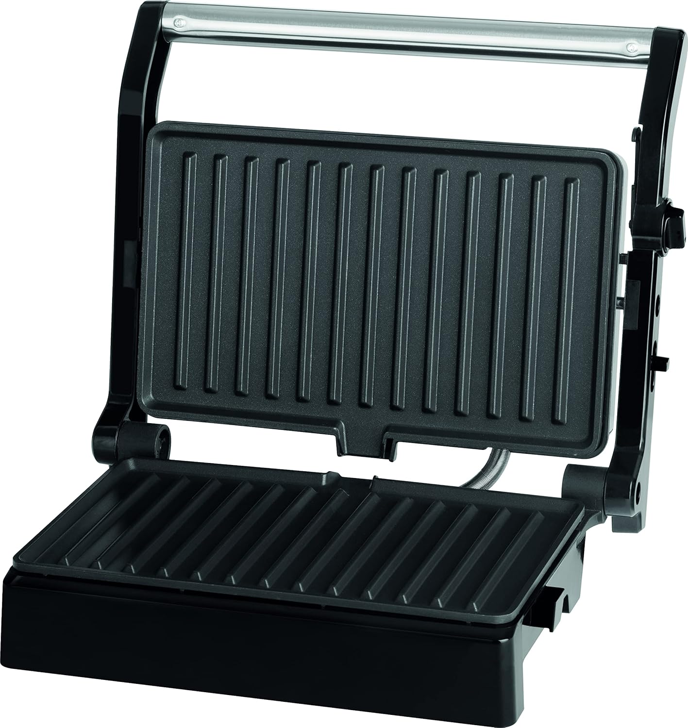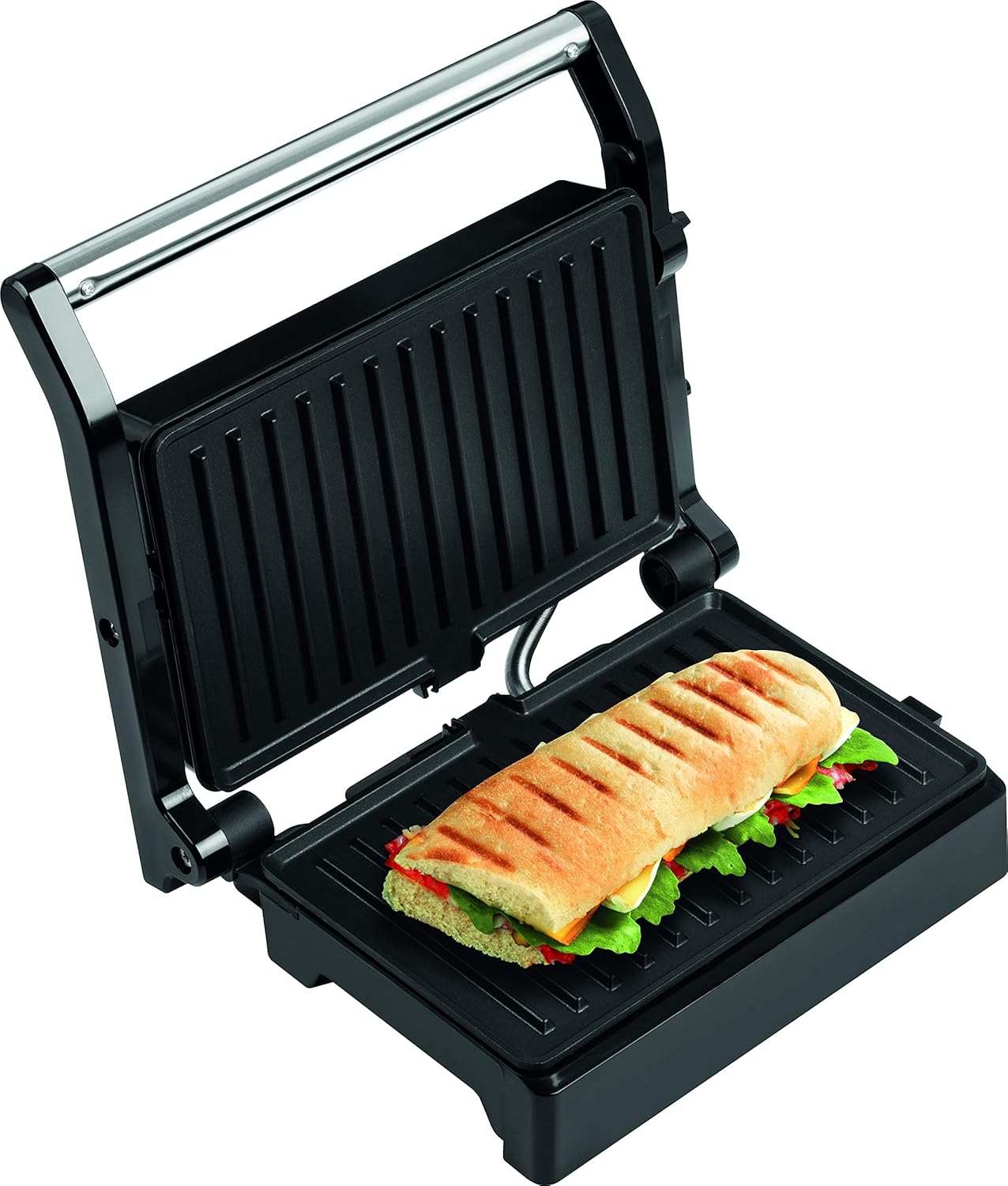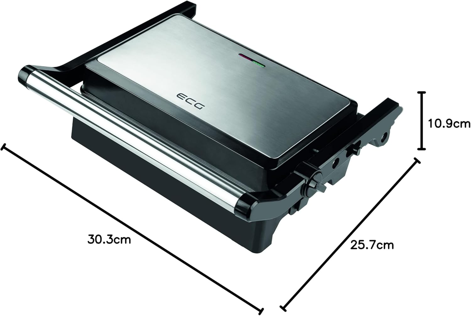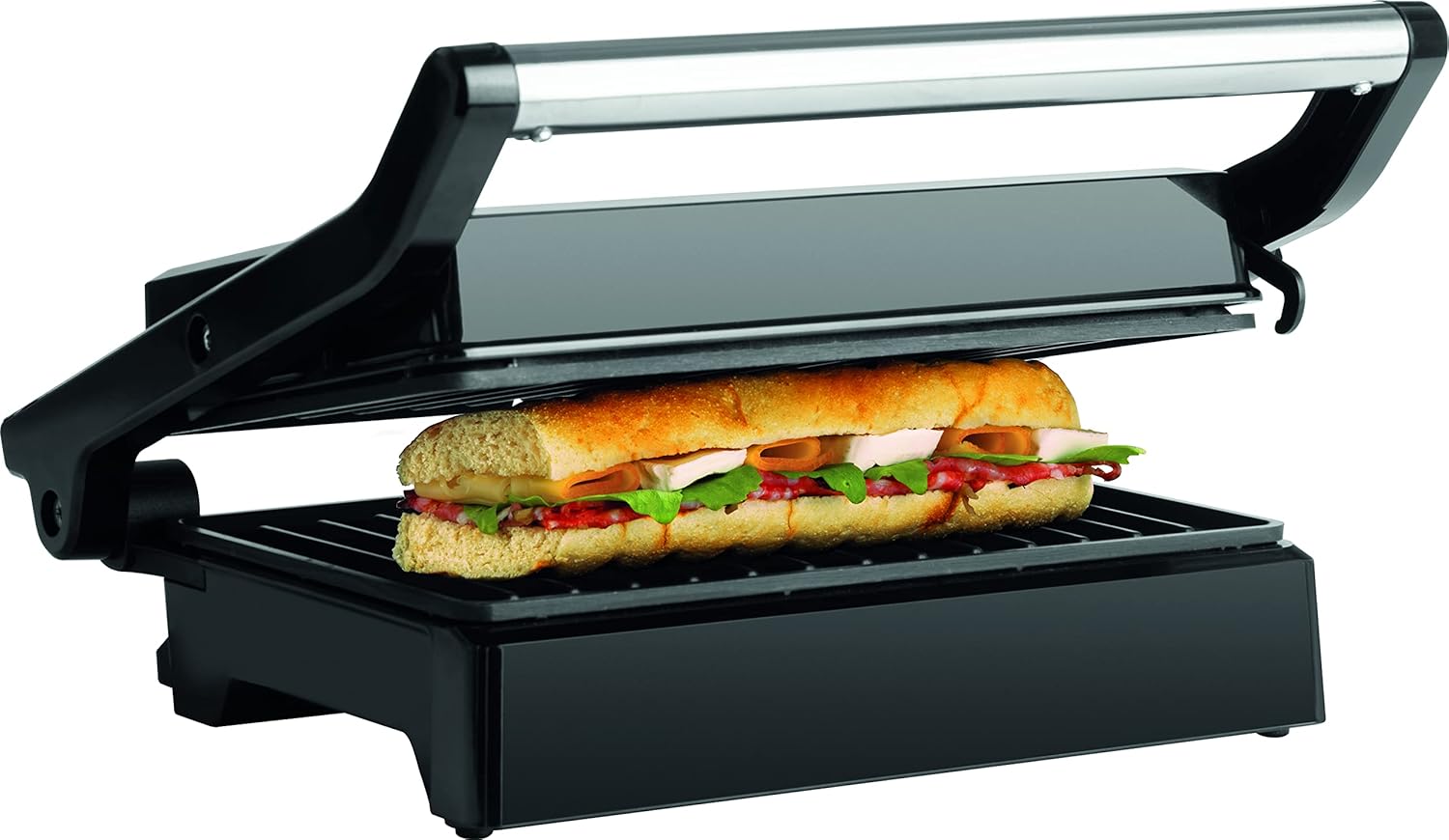 Adatto alla preparazione di panini, toast, carne, pesce e verdure Facile manutenzione grazie alle superfici di cottura antiaderenti Apertura completa a 180° Piastre di cottura: 150 x 245 mm