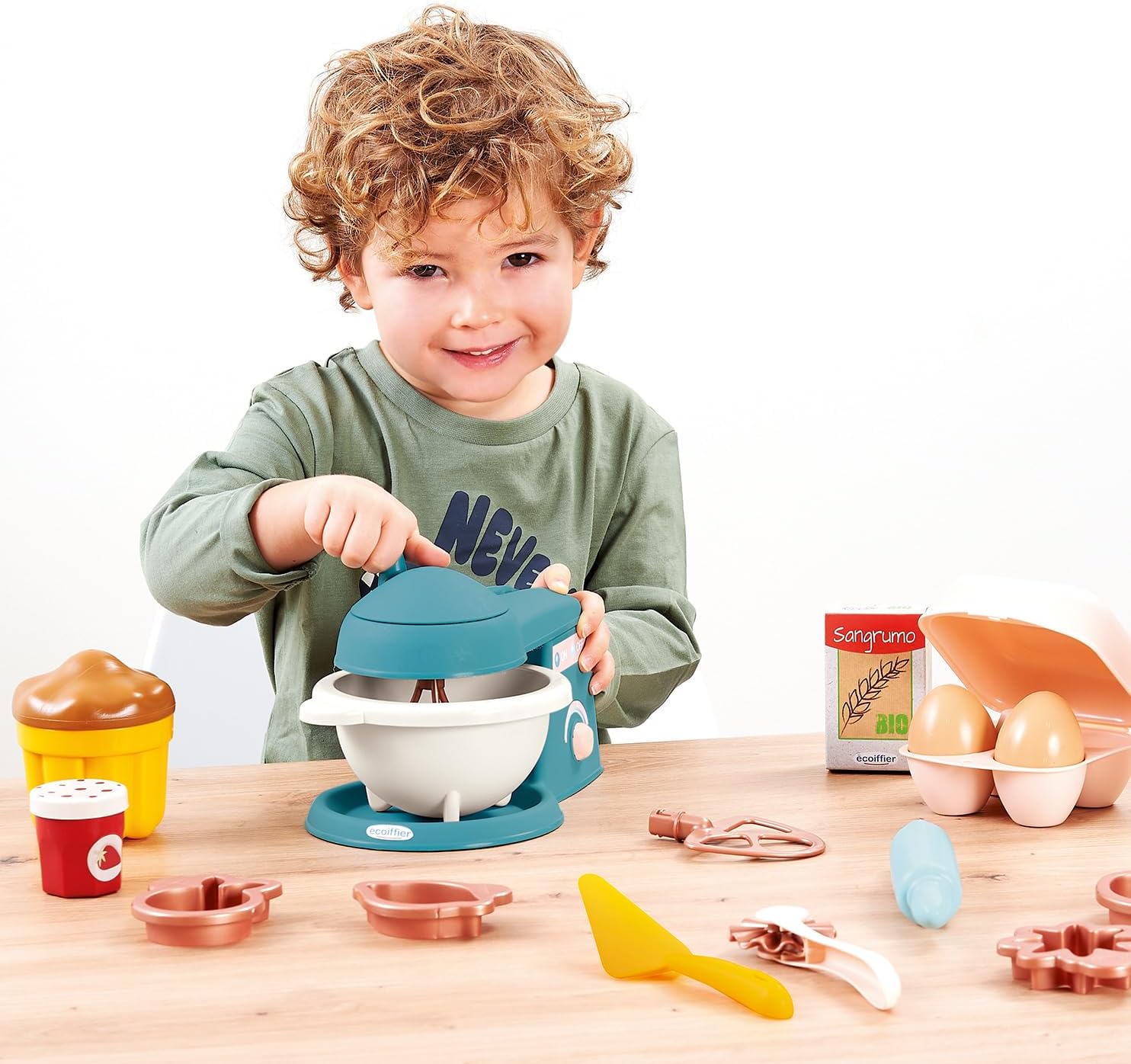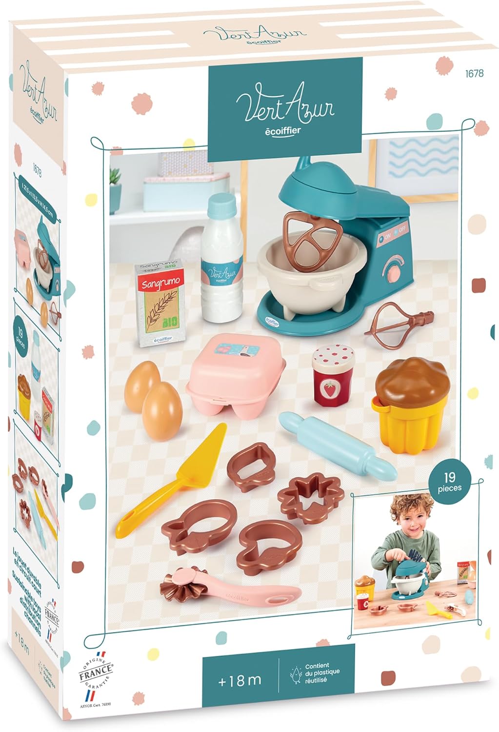 BISCOTTI DI TUTTE LE FORME: il vostro bambino potrà utilizzare i propri accessori di pasticceria per aiutarvi a fare i biscotti! Il set comprende 4 formine, 1 mattarello, 1 paletta per torte, 1 rotella, 1 impastatrice e molti accessori! IL GIOCCHIO SOSTENIBILE A CIRCUITO CORTO: Attraverso la gamma VERT AZUR, Ecoiffier vuole promuovere i suoi impegni, e si inserisce in un approccio eco-responsabile GIOCARE PER CRESCERE MEGLIO: è imitando gli adulti e manipolando diversi giocattoli che i bambini imparano a comprendere il mondo che li circonda, a diventare più abili e più autonomi nella vita quotidiana.