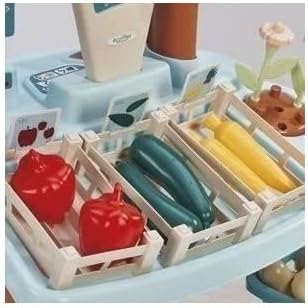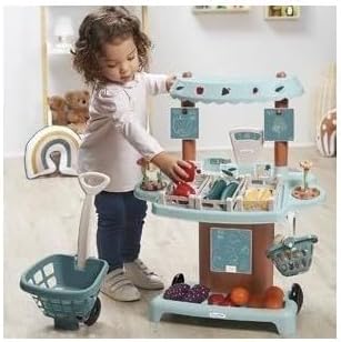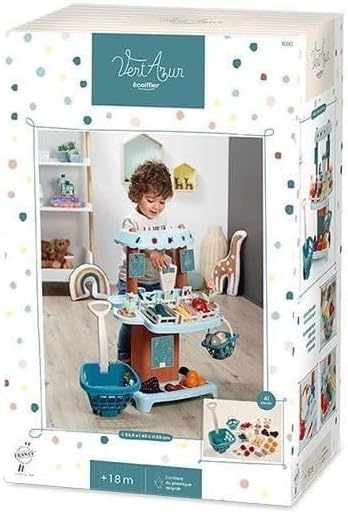 SPAZIO PER PICCOLI COMMERCIANTI: Uno stand itinerante con tutto il necessario per vendere e acquistare frutta e verdura fresca in cassette o fiori dell'orto. STAND COMPLETO: contiene 1 bilancia tradizionale, 1 POS, monete, 1 carta di credito, 2 cestini, frutta e verdura con le loro cassette e fiori. + 18 mesi, made in France