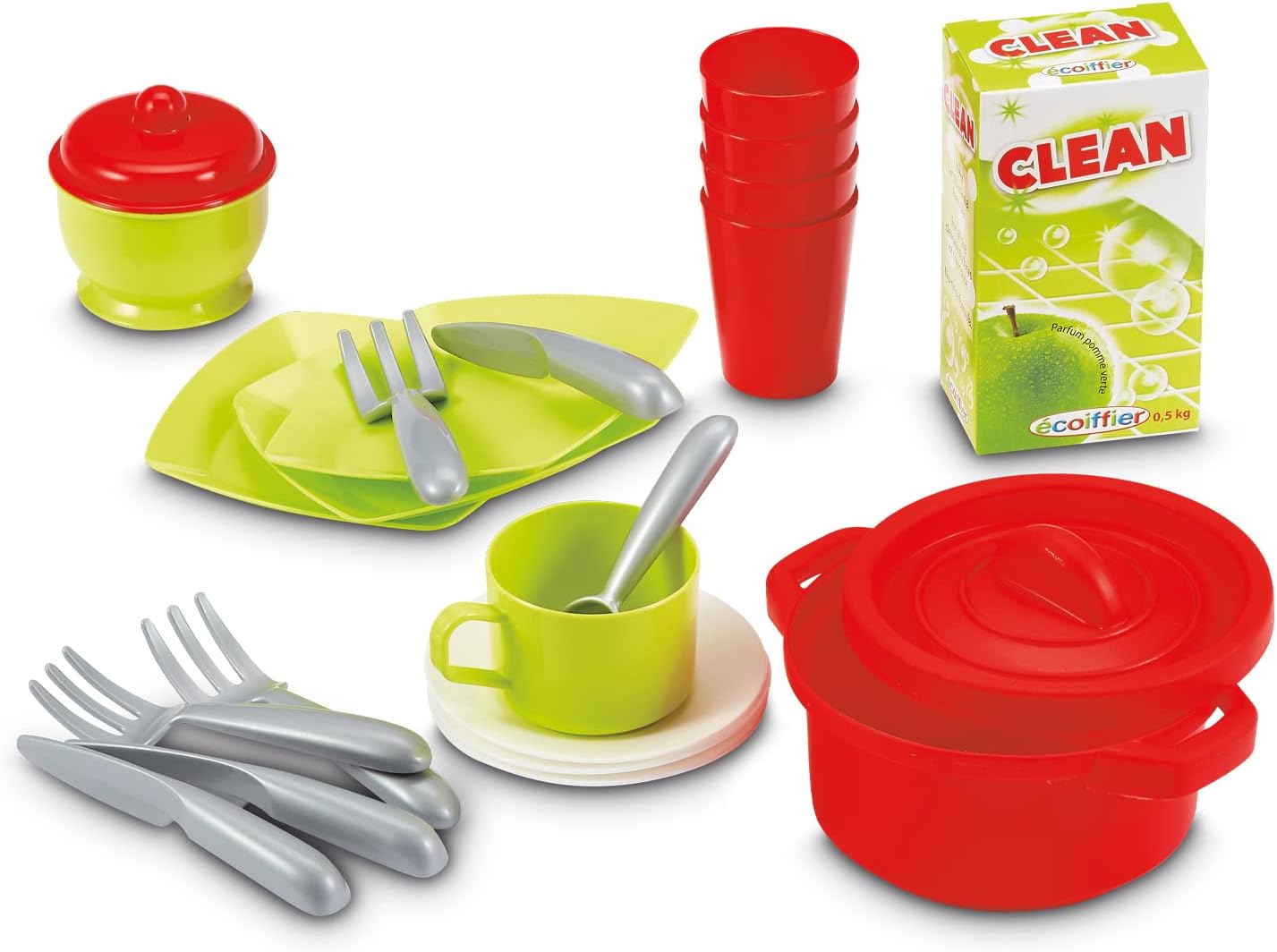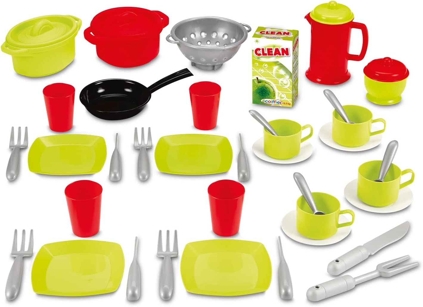 La serie di giocattoli Ecoiffier, che imita dispositivi e accessori della vita quotidiana, consente ai bambini di apprendere e apprendere determinati valori attraverso il gioco Il set multielemento e colorato è un proposta per i bambini che possono creare le proprie stoviglie nella stanza; hanno a disposizione gli accessori necessari per preparare la tavola per l'accoglienza degli ospiti Le stoviglie sono in plastica