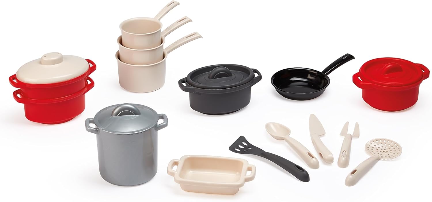 PER CUCINARE COME I GRANDI: Questa bustina contiene le pentole indispensabili per preparare buoni piccoli piatti. UN SACCHETTO MOLTO COMPLETO: Questo kit è composto da 2 casseruole, 1 ciotola, 3 pentole, 1 padella, 1 piatto per gratin, utensili da cucina e 1 set di coperchi. Ecoiffier offre ai bambini riproduzioni fedeli di utensili e elettrodomestici da cucina per cucinare come chef. È imitando gli adulti e manipolando diversi giocattoli che i bambini imparano a comprendere il mondo che li circonda, a diventare più abili e autosufficienti quotidianamente. Toys Ecoiffier è un'azienda a conduzione familiare che produce tutti i suoi giocattoli in Francia.
