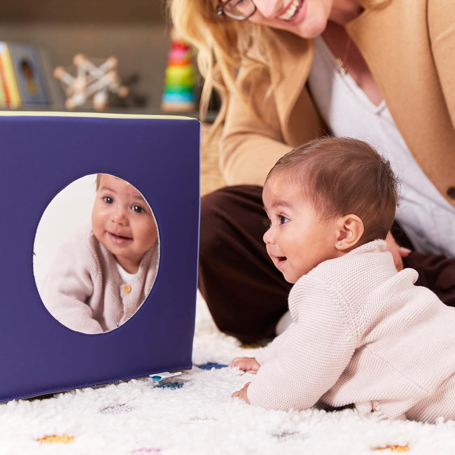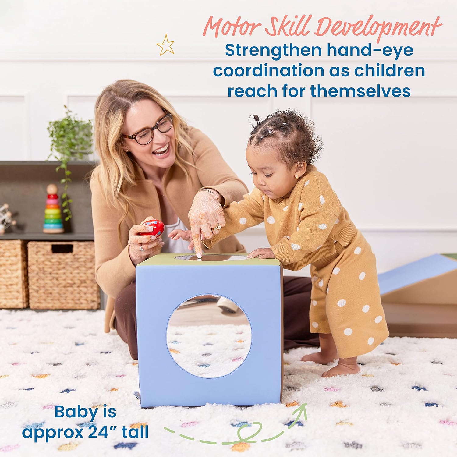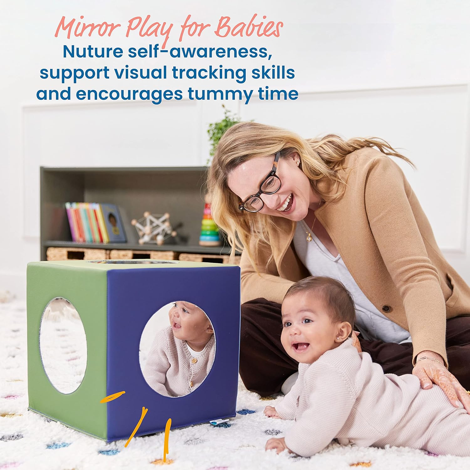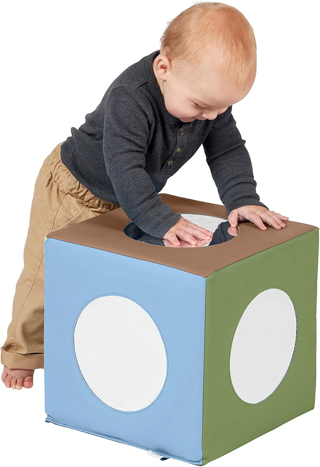 Specchio per bambini: il cubo a specchio a 5 lati offre infiniti modi per giocare man mano che i bambini crescono; gli specchi stimolano la curiosità e motivano le abilità di tracciamento visivo del bambino, gattonando e coordinazione occhio-mano Tempo della pancia: i più piccoli scopriranno il proprio viso sorridente e svilupperanno un importante controllo muscolare mentre si siedono, spingono, usano il giocattolo del bambino per tirarsi su e persino sollevare il blocco di schiuma Brain Boosting: Gli specchi sono visivamente stimolanti e una parte importante del tempo di gioco; ideali per lo sviluppo fisico e sociale, tra cui consapevolezza di sé, capacità di concentrazione, curiosità e creatività Sicuro certificato: questo specchio da gioco per bambini privo di lattice è GREENGUARD [GOLD] per bassi COV, conforme CPSIA, aderisce ai requisiti CAL TB 117 ed è costruito con schiuma certificata CertiPUR-US Dimensioni del prodotto: il blocco dello specchio misura 30,5 cm di larghezza x 30,5 cm di profondità x 30,5 cm di altezza, gli specchi sono 17,8 cm di profondità; il cubo dello specchio arriva completamente assemblato; è richiesta la supervisione attiva attiva e diretta per adulti