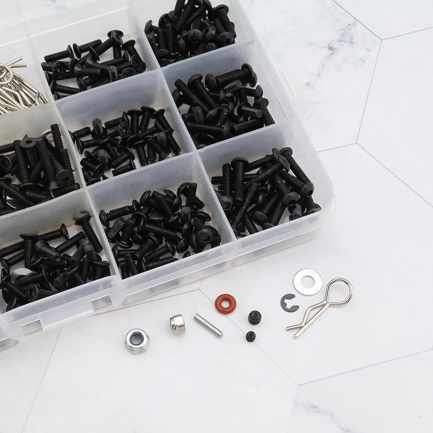 Compatibilità: compatibile con camion cingolati per modellini RC in scala 1/8 1/10 1/12. Applicazione: un must per modellini di auto, veicoli, camion, buggy, fuoristrada, percorsi brevi e cingolati RC. Organizzazione semplice e portatile: classifica e conserva in diverse griglie in una custodia di plastica per un facile utilizzo. Materiale: realizzato in metallo di alta qualità, durevole e sufficiente per un uso prolungato. Idea di viti di diverse dimensioni per modelli RC. Materiale: metallo; Colore: nero