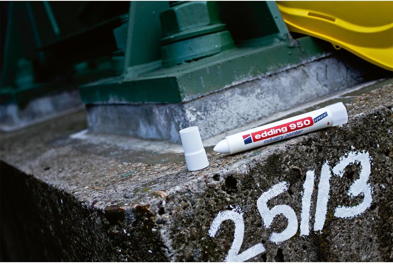 Marcatore speciale industria per marcatura impermeabile, resistente al calore e permanente superfici o ruvide in petrolio, metallo e altre industrie pesanti 1 pittore dell'industria in bianco La pasta colorata è immediatamente pronta all'uso, non si cancella ed è quindi estremamente resistente; colori intensi per marcature affidabili e altamente visibili Punta in pasta di alta qualità per una marcatura precisa e duratura su superfici ruvide o polverose; può essere utilizzato su una superficie pulita sott'acqua Il pittore industriale edding 950 è disponibile in nero, rosso, blu, giallo e bianco; colori intensi per una marcatura chiaramente visibile