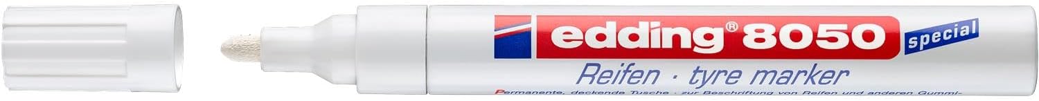 Marcatore speciale in gomma per una marcatura duratura su pneumatici e altri oggetti in gomma, ad esempio per il cambio dei pneumatici La confezione contiene 1 pennarello speciale in gomma bianca L'inchiostro coprente dall'aspetto laccato è impermeabile, molto resistente alla luce, si asciuga rapidamente e resiste alla cancellazione Sostiene in modo duraturo in interni ed esterni Un pratico strumento per scrivere in modo affidabile e coprente sui pneumatici