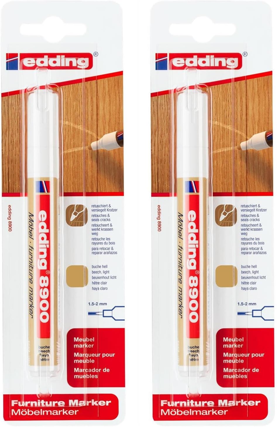 Pennarello per ritocco per legno per riempire in modo permanente i graffi di impiallacciature e legno massello di diverse specie La confezione contiene 1 pennarello per mobili in noce antico Punta rotonda robusta con una larghezza del tratto di 1,5-2 mm per un uso pulito e preciso Inchiostro molto coprente, simile alla vernice, inodore, ad asciugatura rapida e resistente all'acqua e alla cancellazione; resiste alla maggior parte dei detergenti delicati Disponibile in 13 tonalità di legno