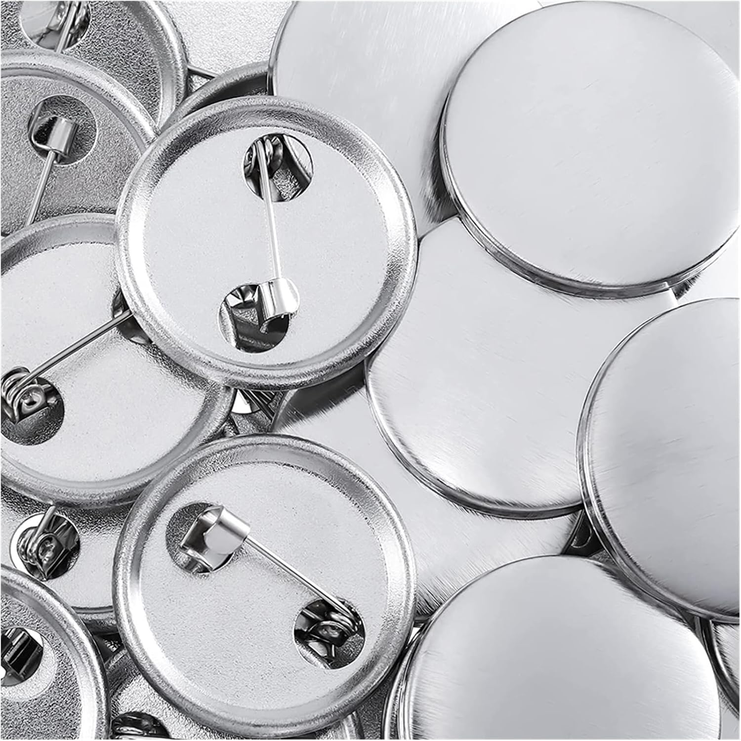 Materiale: Copertura in ferro + Pellicola + Base in ferro Quantità: 100 pezzi/confezione Diametro: 25mm/37mm/44mm/58mm/75mm Colore: Argento Incluso: 100 x Badge con base in ferro