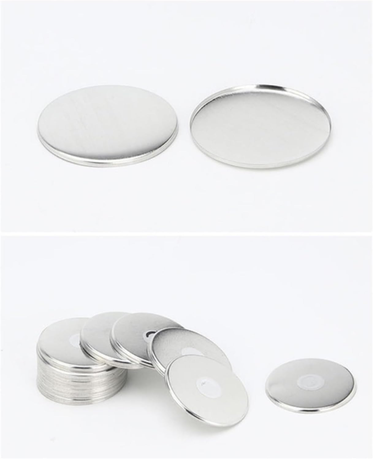 Materiale: metallo Misura: 35 mm, 55 mm Colore: argento Forma: tonda Uomo: 50/100 pezzi