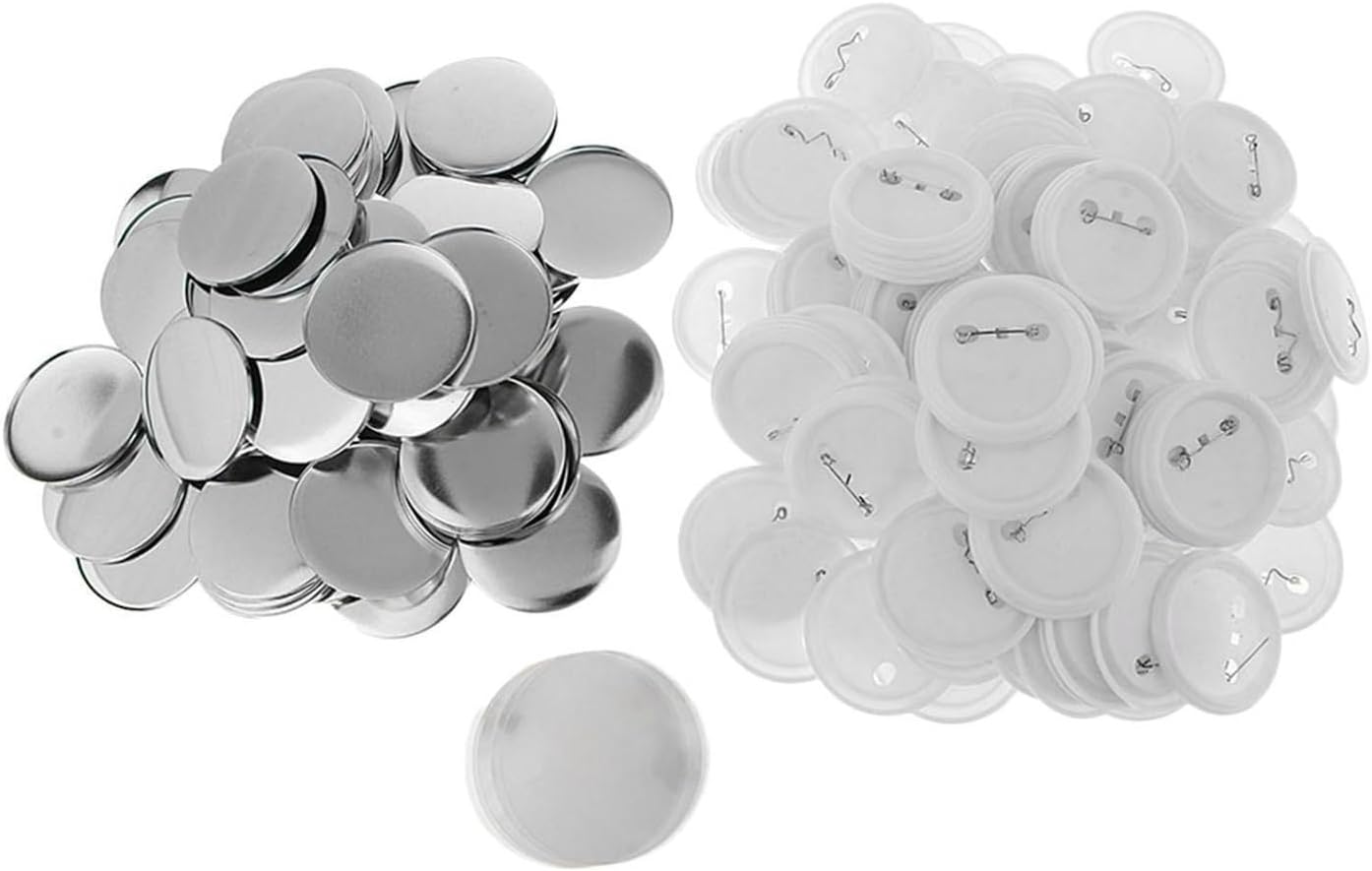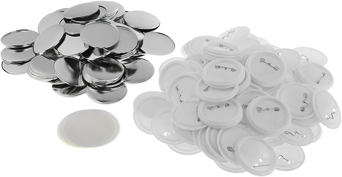 Materiale: metallo acrilico Dimensioni: diametro 5 cm La confezione include: 100 set di accessori per la creazione di bottoni vuoti Forma: rotonda Colore: argento