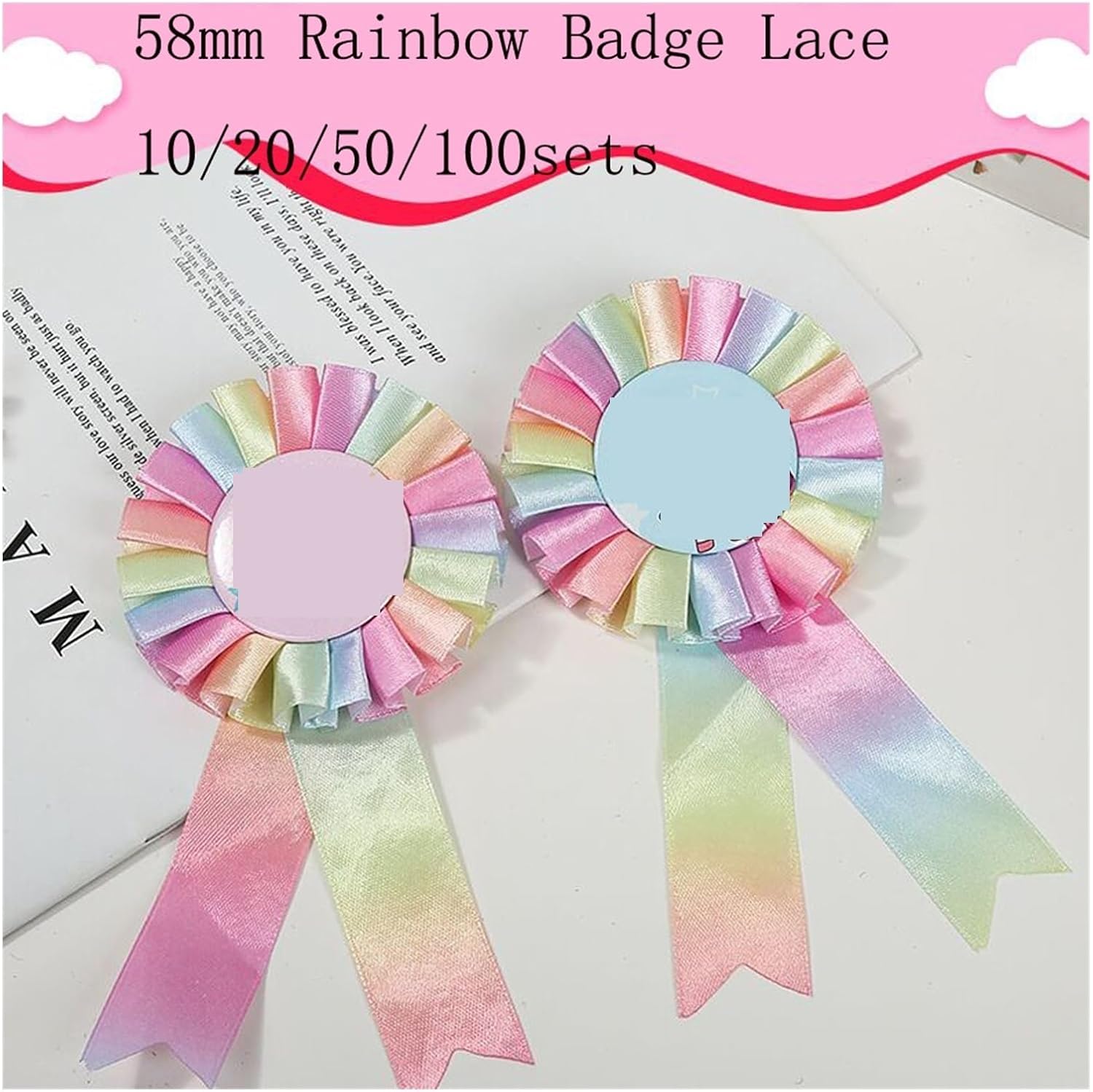EDEDE Kit per la creazione di badge 58 mm Punta per badge arcobaleno 50/100 set Badge Materiale vuoto Macchina per badge Fai da te Compleanno Vacanza Regalo Nastro Nastro (50 set)