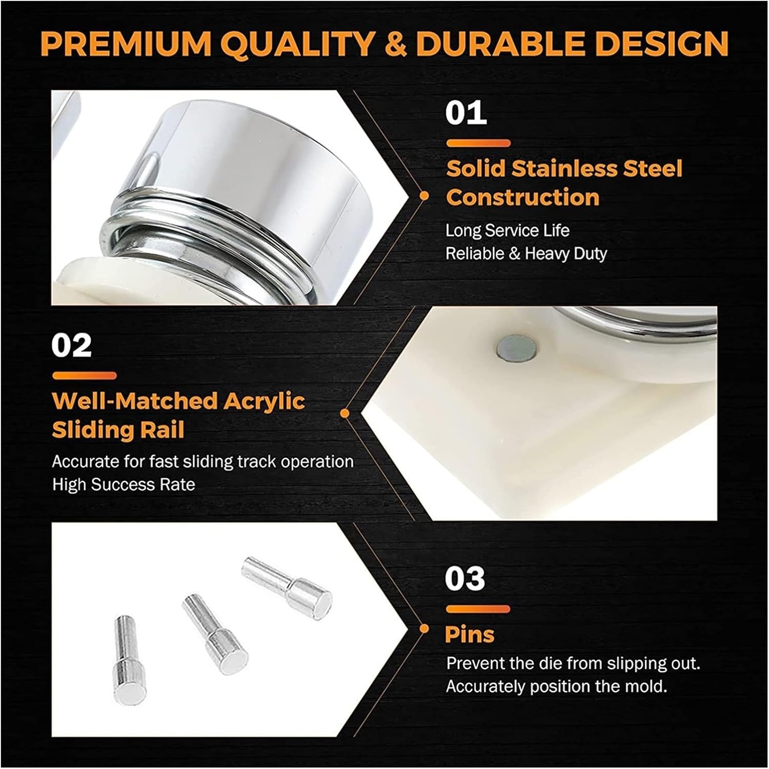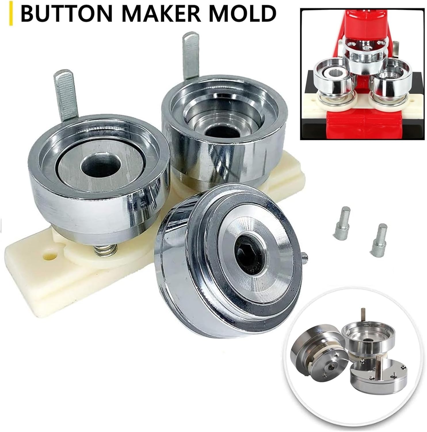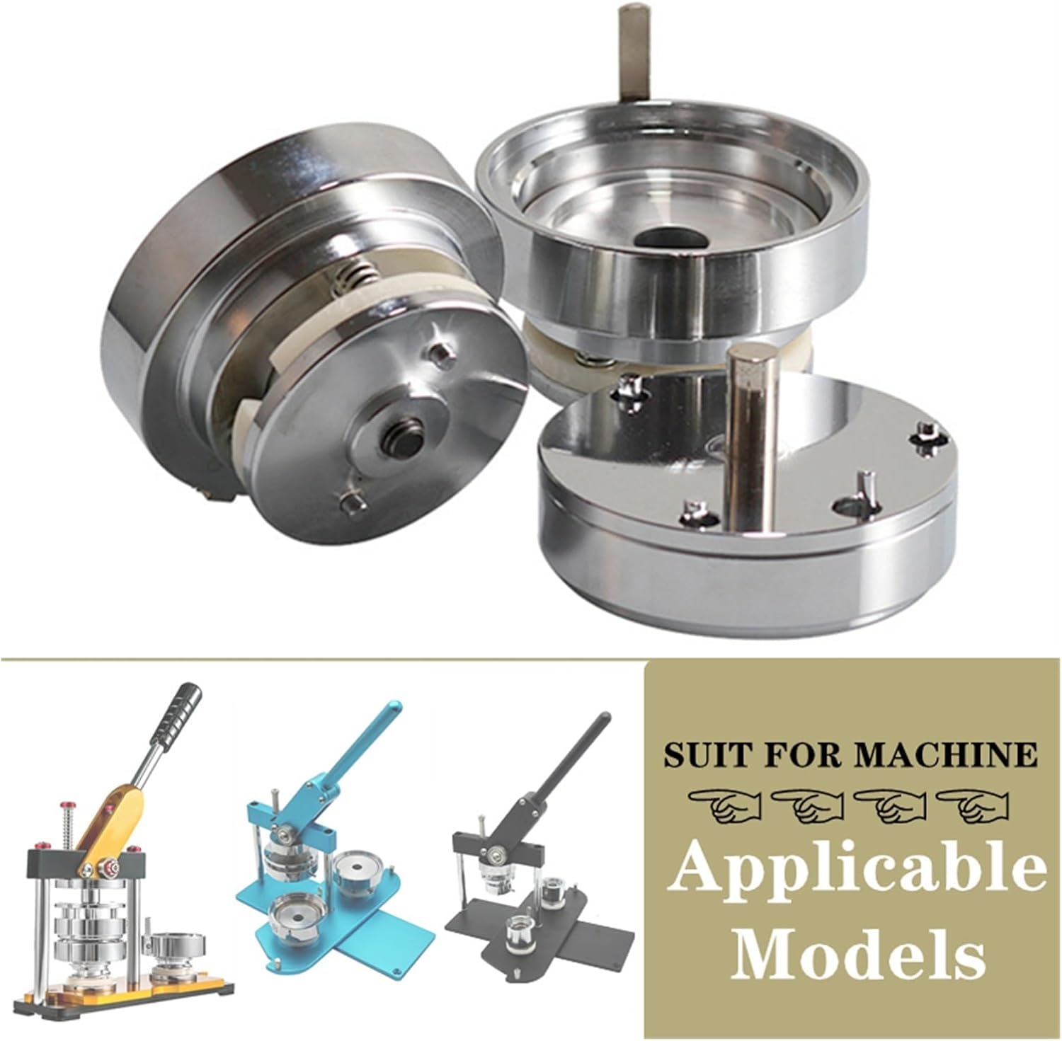 Stampo tondo realizzato con stampo in metallo + piastra di base in ABS. Set di timbri: Materiale: stampo in metallo + piastra base in ABS Colore: stampo argento + piastra base bianca Dimensioni timbro: 58 mm Contenuto della confezione: 3 set di timbri e piastra base in ABS