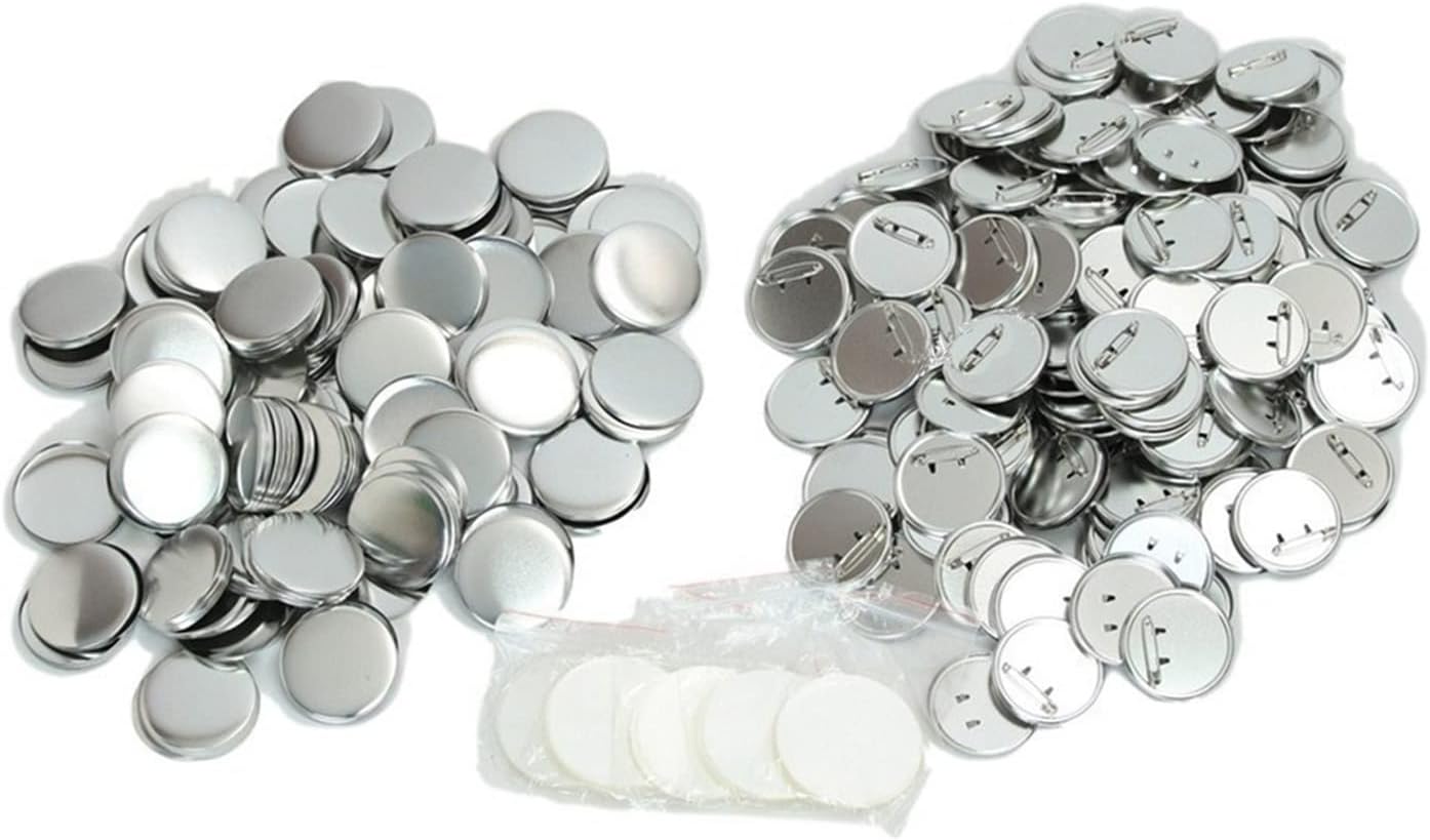 PERFETTAMENTE APPLICABILE - Gli accessori per la produzione di bottoni sono adatti per la maggior parte delle macchine per la produzione di bottoni da 37/44/50/58/75 mm sul mercato e qualsiasi semplice macchina per la produzione di aghi può utilizzare il nostro materiale per la produzione di bottoni. Elenco dei kit di pulsanti: riceverai 300 set di copertura in metallo, copertura posteriore in plastica, pellicola rotonda trasparente. Il numero di tutte le parti è lo stesso. Design ragionevole: la pellicola in PVC di alta qualità assicura che il badge sia lucido, la copertura in metallo rende il pulsante del badge durevole e la copertura posteriore in plastica non è facile da arrugginire. La carta bianca inclusa ti evita il fastidio di tagliare la carta. Tutto è pensato per comodità affinché tu possa creare pulsanti perfettamente personalizzati. Componenti per badge fai-da-te: puoi creare bottoni unici per amici, famiglia e bambini. Molto adatto per eventi scolastici, badge nominativi, souvenir, regali di compleanno personalizzati, regali di Natale. Può essere utilizzato in abbigliamento, zaini, cappelli, ecc. Facile da usare: posizionare innanzitutto la copertura metallica, l'immagine e la pellicola di plastica uno per uno sulla macchina per bottoni e premere. Dopo aver formato la pressa, la copertura posteriore del bottone di plastica viene posizionata sulla macchina per bottoni e pressata insieme alle parti anteriori. Un badge pulsante completo è pronto.