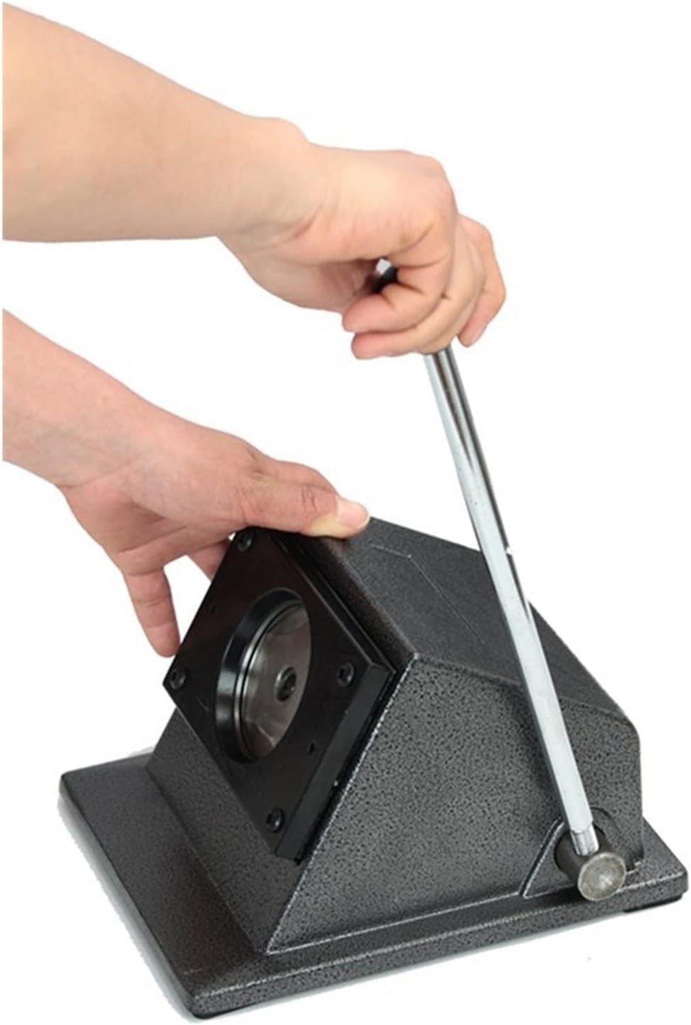 Tagliare la carta più grande in un formato più piccolo (adatto per la pinza), inserirla nella taglierina circolare ed estrarre la carta tagliata dopo aver premuto la maniglia adattando il disegno esattamente al bordo del coltello. Preciso ed efficiente, basso tasso di danneggiamento Può tagliare tutti i tipi di adesivi per frigorifero, apribottiglie, carte, badge, fibbie per cartoni animati, fibbie per chiavi, fibbie, cornici per foto, badge e altri materiali di queste dimensioni di prodotto Funzionamento comodo e facile, inserire la carta nel bordo del coltello, la maniglia esce una volta premuto un cerchio La testa del coltello non è facile da invecchiare