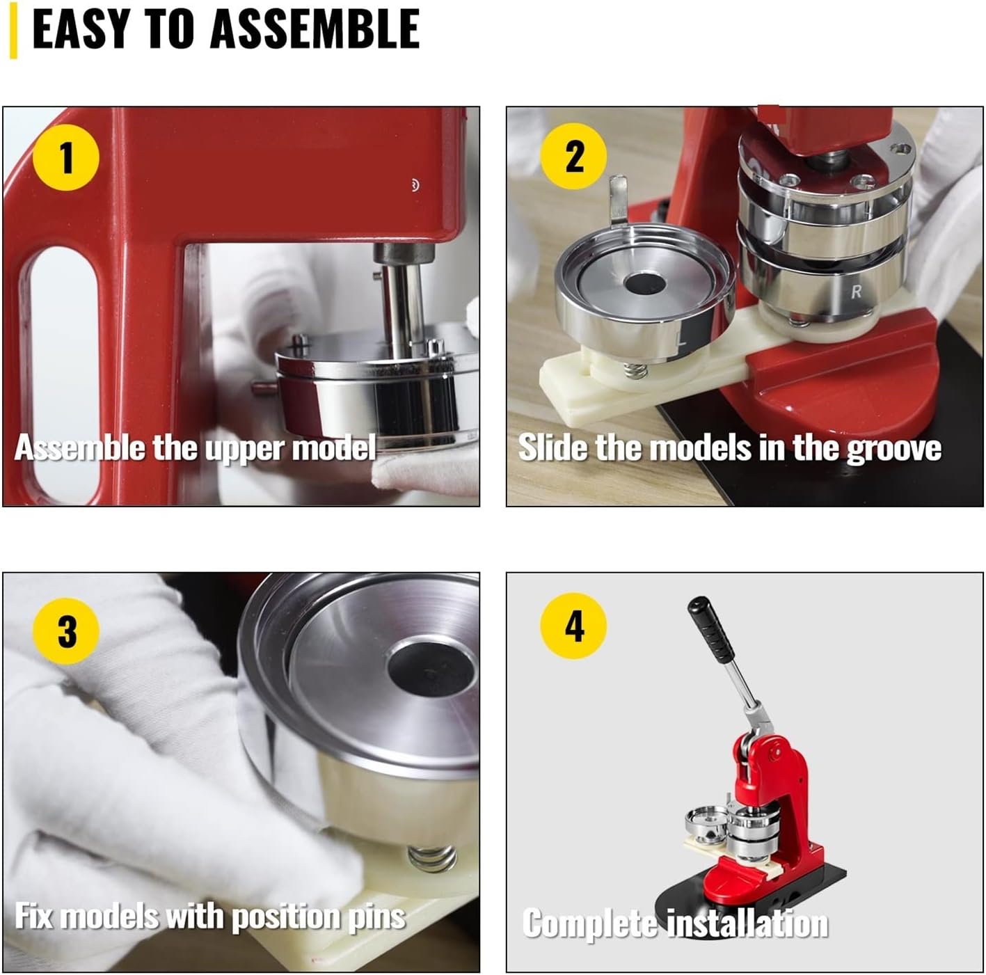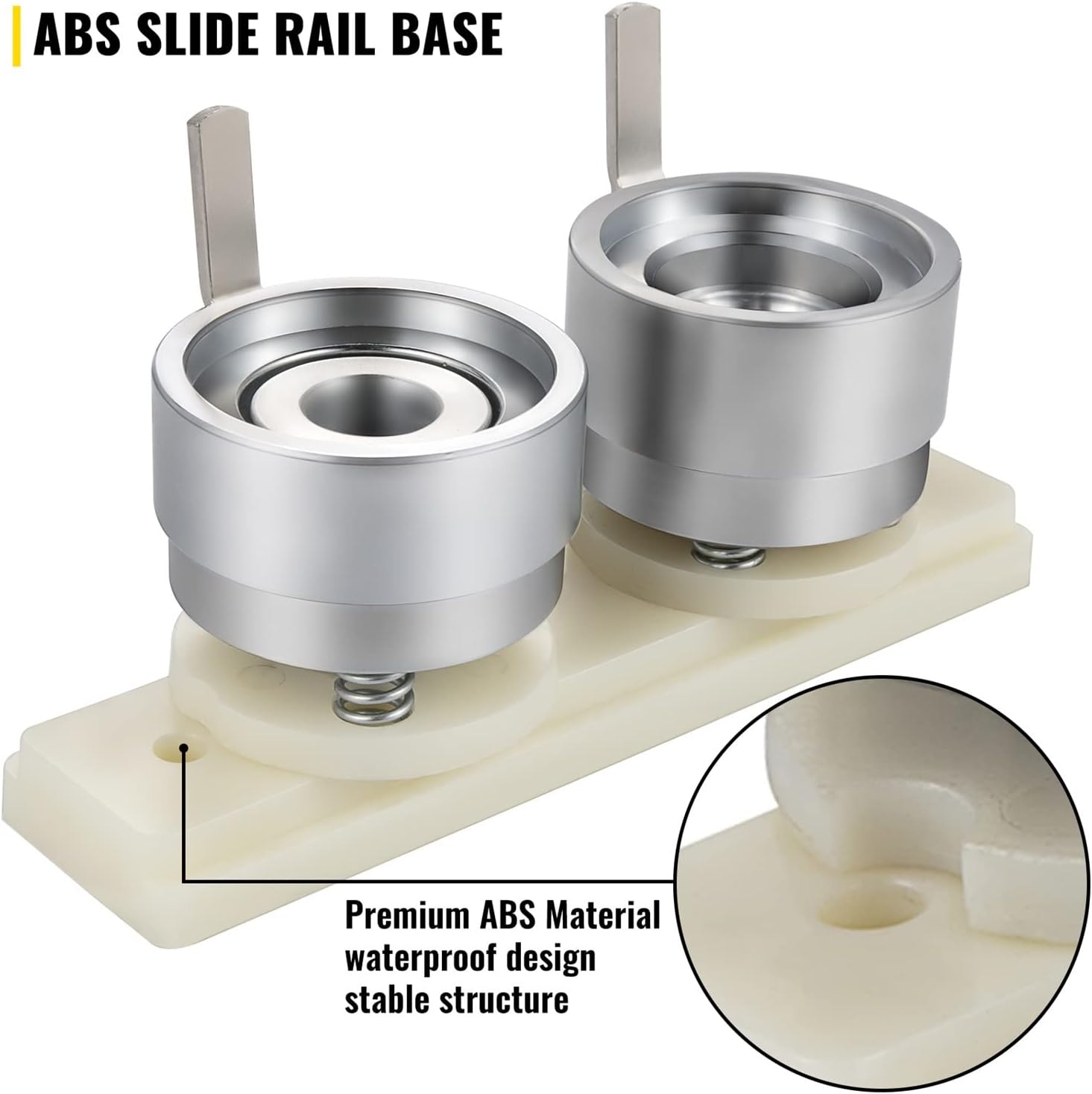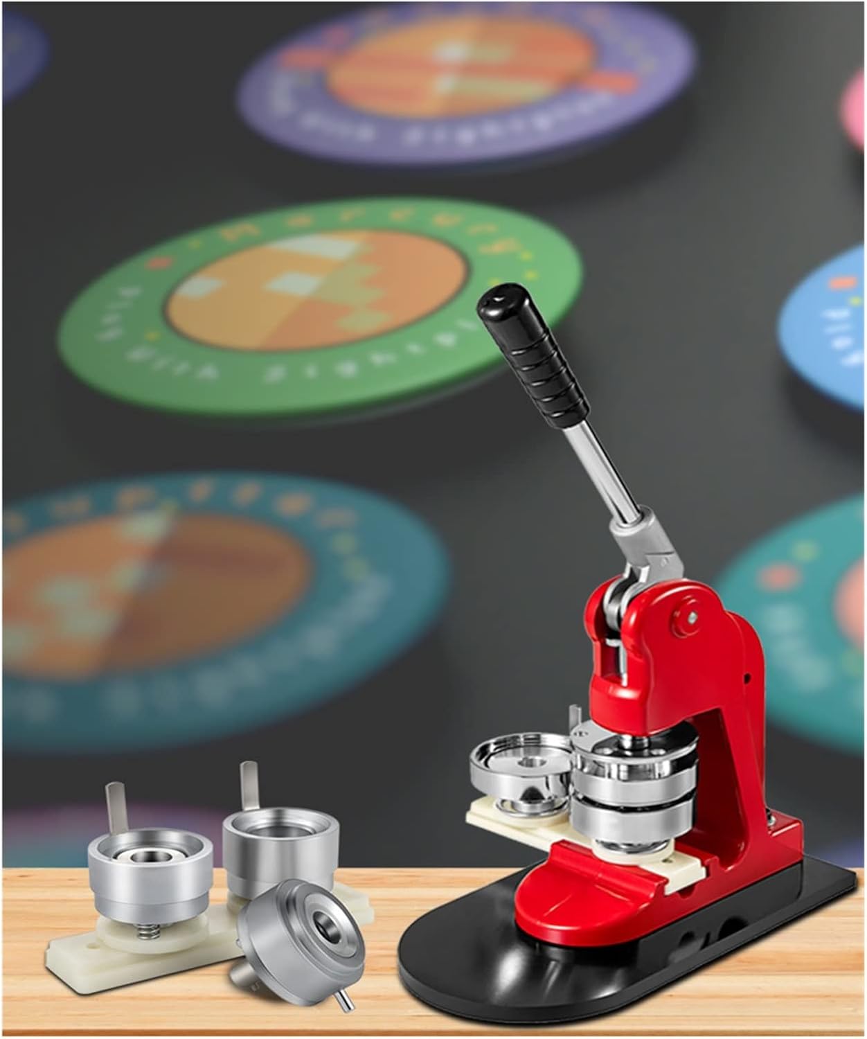 Nucleo in lega di alluminio, il timbro del badge è dotato di un guscio in acciaio al carbonio e il nucleo del timbro in lega di alluminio ha una buona resistenza all'usura, migliore durezza e alta efficienza. Base con binario di scorrimento in ABS, realizzata in materiale ABS di alta qualità, binario di scorrimento impermeabile, resistente agli acidi e agli alcali per una base più stabile. Se hai bisogno di fustelle di altre dimensioni, puoi sostituirle facilmente con questa guida di scorrimento. Facile da montare. Con una fustella superiore, due fustelle inferiori e un perno di posizionamento, puoi facilmente assemblare una punzonatrice per creare una varietà di bellissimi badge. Eccellente molla per spille La molla migliorata offre un'eccellente curva di pressione per un facile utilizzo e due perni di posizione progettati per fissare la fustella per garantire stabilità e durata Sostituzione diretta, 125 32 mm 1,73" (44 mm) / 2" (50 mm) / 2,2" (56 mm) / 2,3" (58 mm) / 3" (75 mm) Modello per creazione di bottoni, compatibile con la creazione di bottoni rossi Se rompi la fustella o hai bisogno di fustelle di dimensioni diverse per realizzare badge diversi, il modello è la scelta ideale per la sostituzione