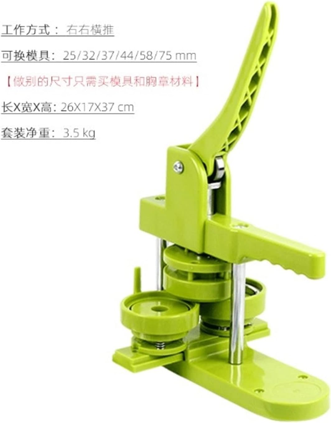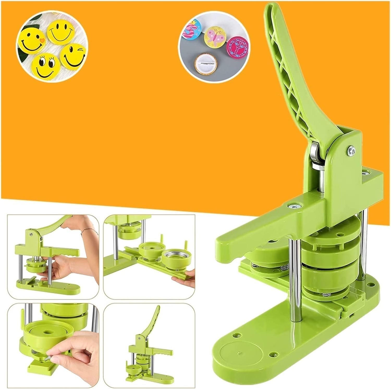 La nostra produzione di bottoni utilizza un caratteristico supporto push-pull per le matrici da pressare. Può essere veloce, quindi i principianti possono imparare come usarlo. Devi solo sperimentare 1-2 volte, tutti possono padroneggiare il trucco. L'impugnatura dal design ergonomico e il cuscinetto progettato meccanicamente ti fanno risparmiare più forza e ti offrono più comfort. Rispetto alle macchine per badge in metallo, questa macchina per badge è più leggera e meno arrugginita. Il dispositivo di posizionamento migliorato non solo migliora l'efficienza e la precisione, ma aiuta anche a migliorare il posizionamento. Anche la sicurezza è stata migliorata, rendendola più comoda da usare e garantendo che i tuoi badge abbiano esattamente l'aspetto previsto. Il kit per creazione di bottoni è caratterizzato da un corpo macchina robusto, leggero, lunga durata, elevata efficienza in termini di costi, costi inferiori e alto interesse. Stampi intercambiabili: design push-pull, funzionamento semplice, gli stampi possono essere scambiati a piacimento, consentendo di realizzare badge di diverse dimensioni.