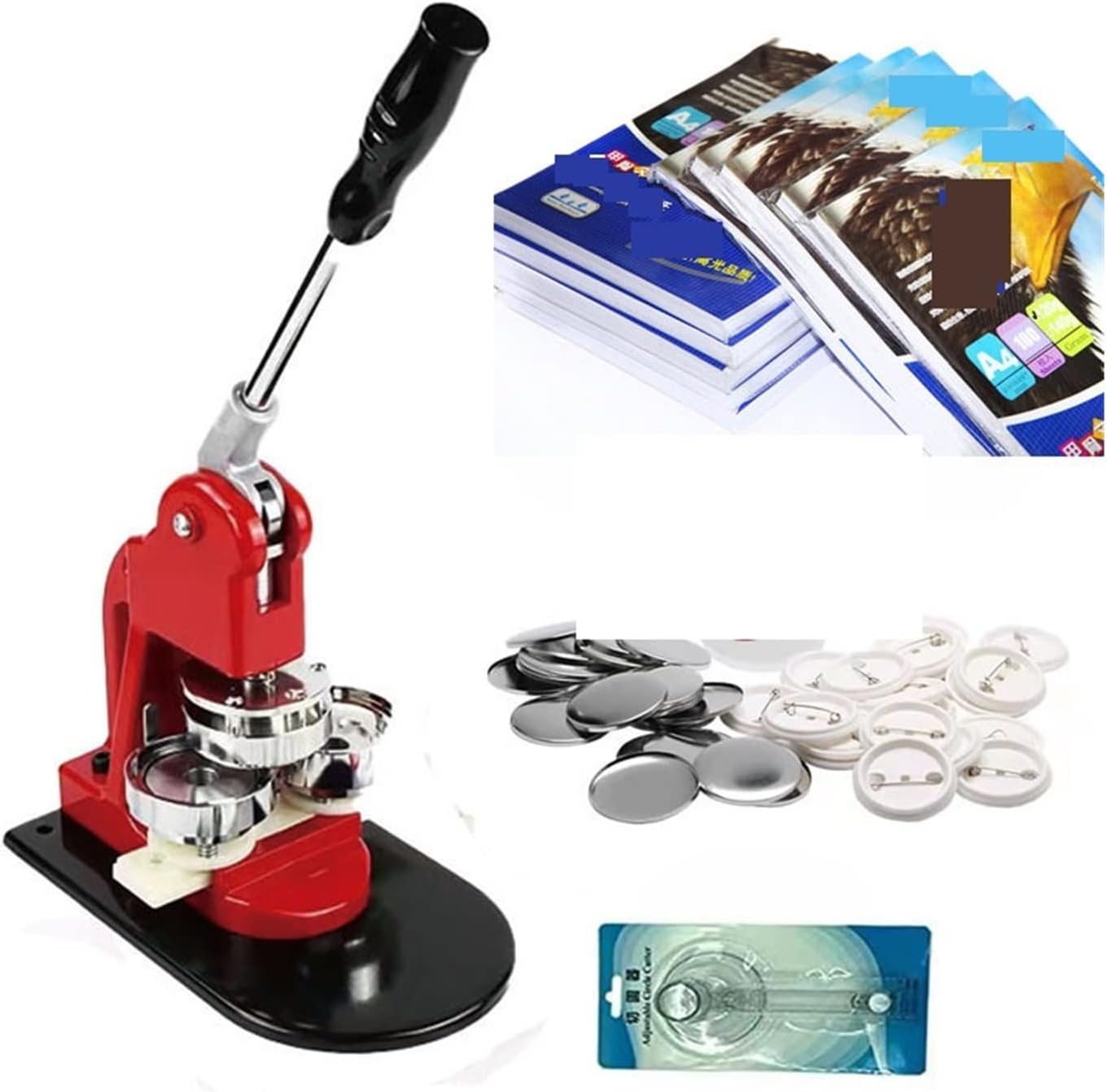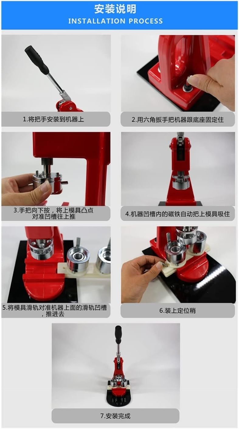 Questa macchina per bottoni viene fornita con un set di stampi adatti alla realizzazione di badge per bottoni. La base scorrevole consente di spostarsi in modo più preciso e rapido con il funzionamento della guida di scorrimento. La maniglia in acciaio dal design ergonomico offre una presa comoda e consente di risparmiare energia. E' una macchina fantastica, facile da usare, veloce e funziona benissimo. Comunemente utilizzato per creare bottoni personalizzati Distintivi personalizzati utilizzati per: Souvenir Decorazioni personalizzate per vestiti, borse e portachiavi Regali di Natale Memoriali di viaggio, ecc.