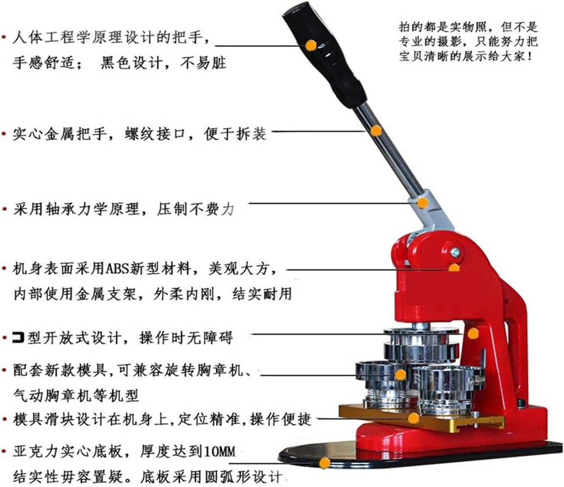Macchina per badge. Multifunzione. Puoi usarlo per creare tipi di badge. Questa macchina per bottoni viene fornita con un set di stampi adatti per realizzare badge per bottoni da 5,8 cm. La base scorrevole consente di spostare la matrice metallica in modo più accurato e rapido grazie al funzionamento con binario scorrevole. La maniglia in acciaio dal design ergonomico offre una presa comoda e consente di risparmiare energia. E' una macchina fantastica, facile da usare, veloce e funziona benissimo. Ampiamente utilizzato per creare pulsanti personalizzati per eventi politici o eventi sportivi, ecc.