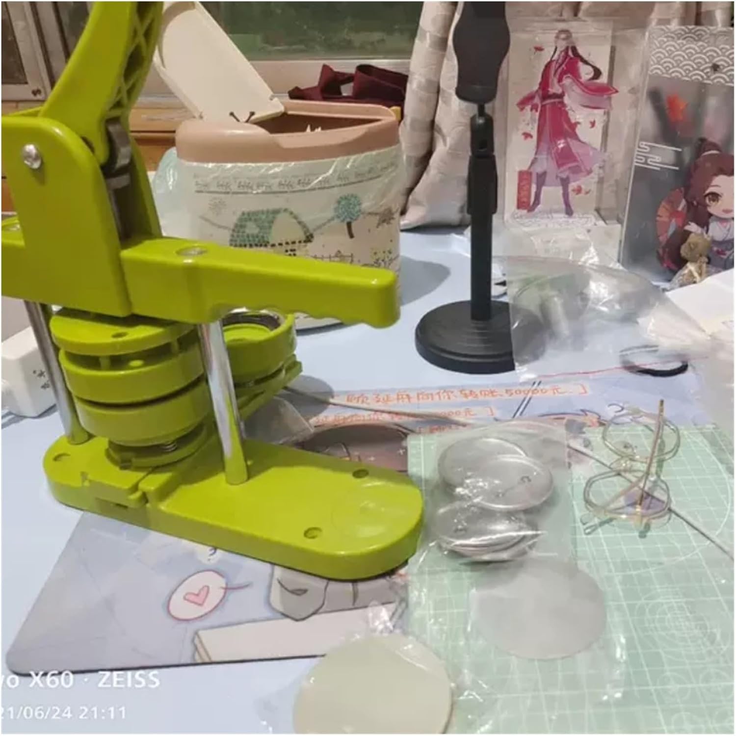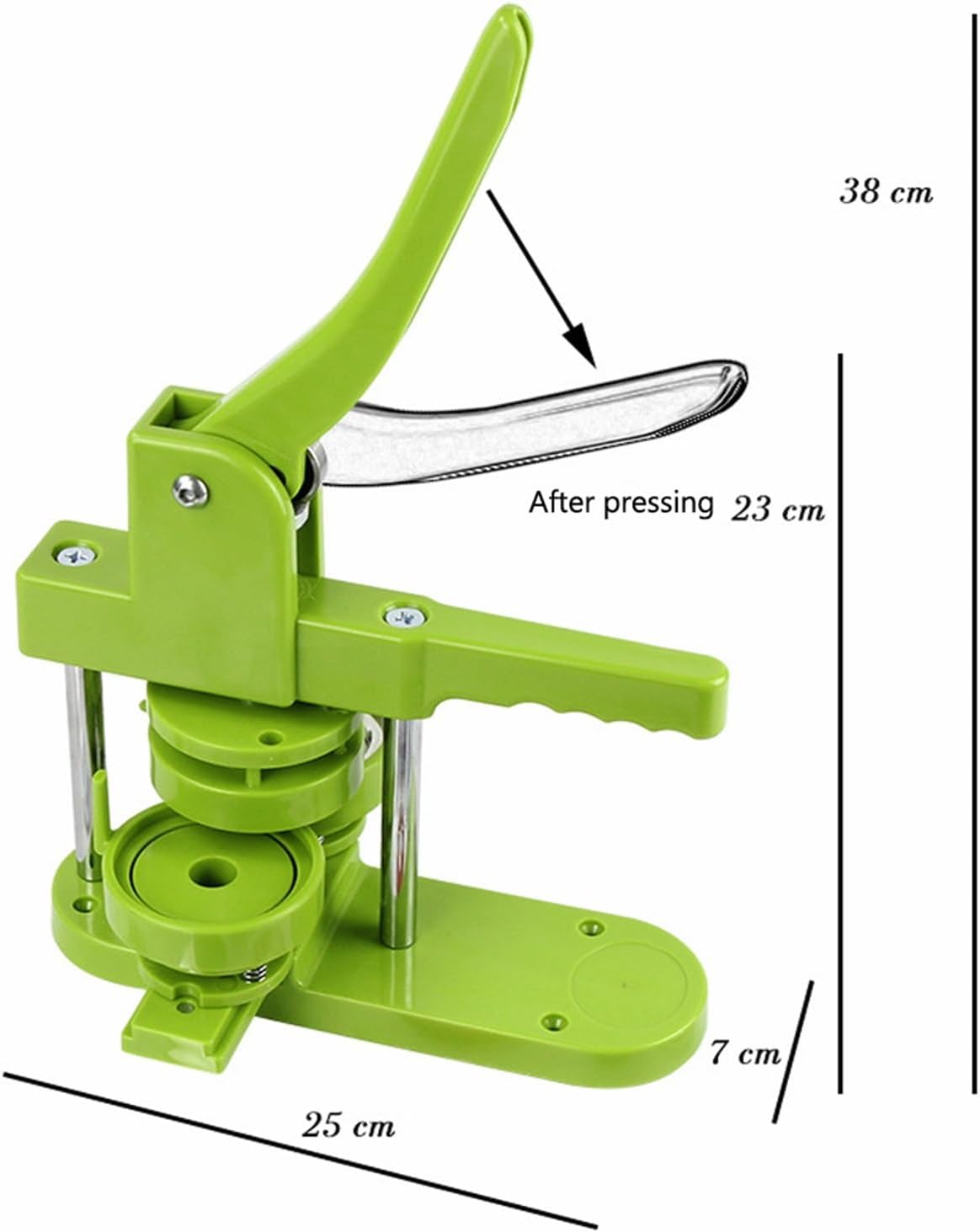 Materiale: plastica, metallo Colore: verde Dimensioni: 25 x 7 x 38 cm La confezione include: 1 * Macchina per bottoni con forma Colore: verde