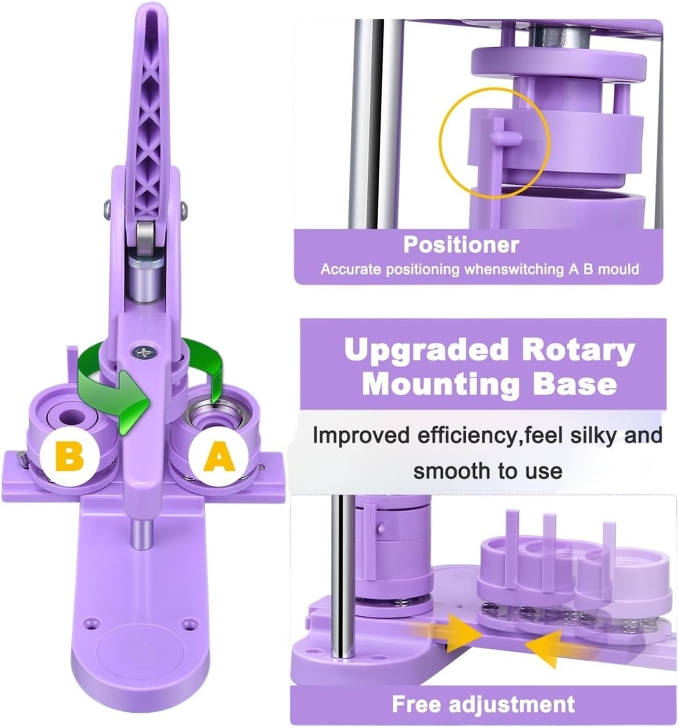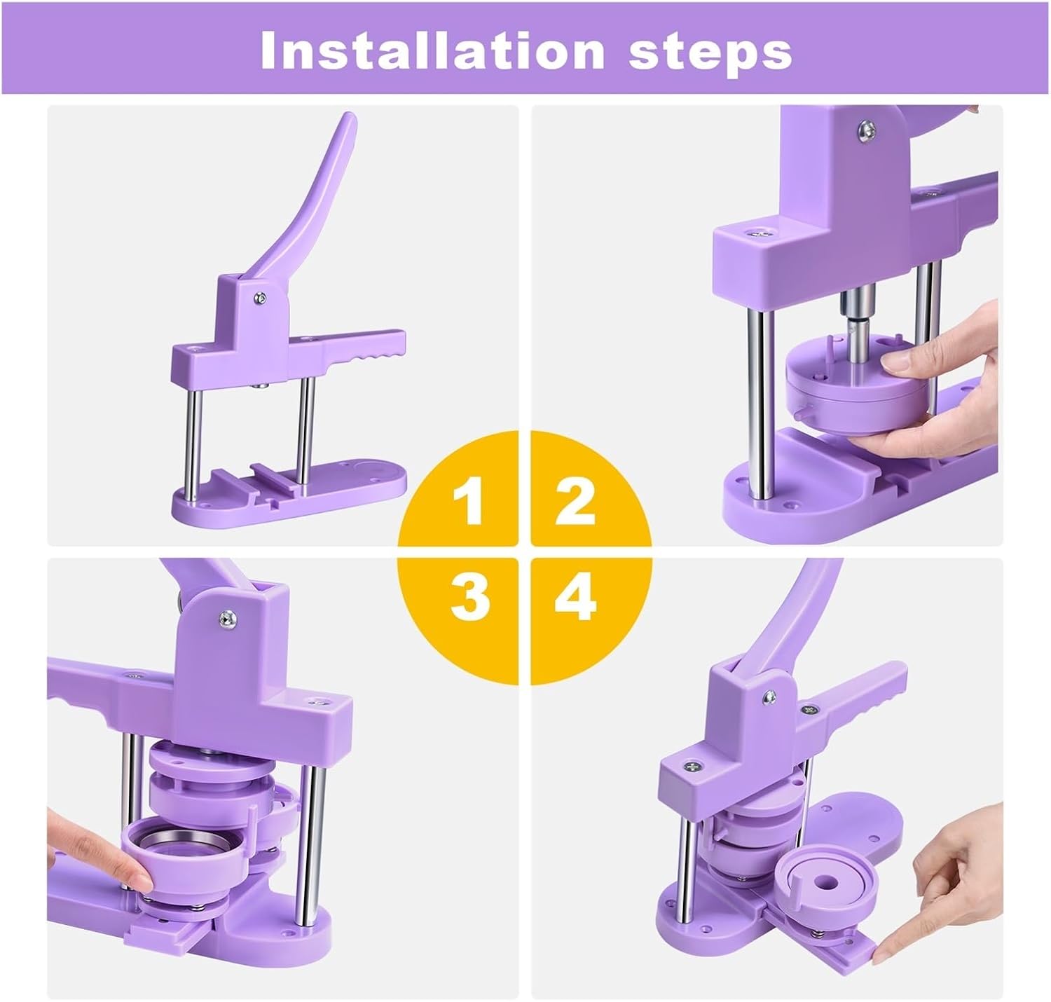 Materiale: plastica, metallo Colore: viola Dimensioni: 25 x 7 x 38 cm La confezione include: 1 * Macchina per bottoni con peso: 2-3 kg