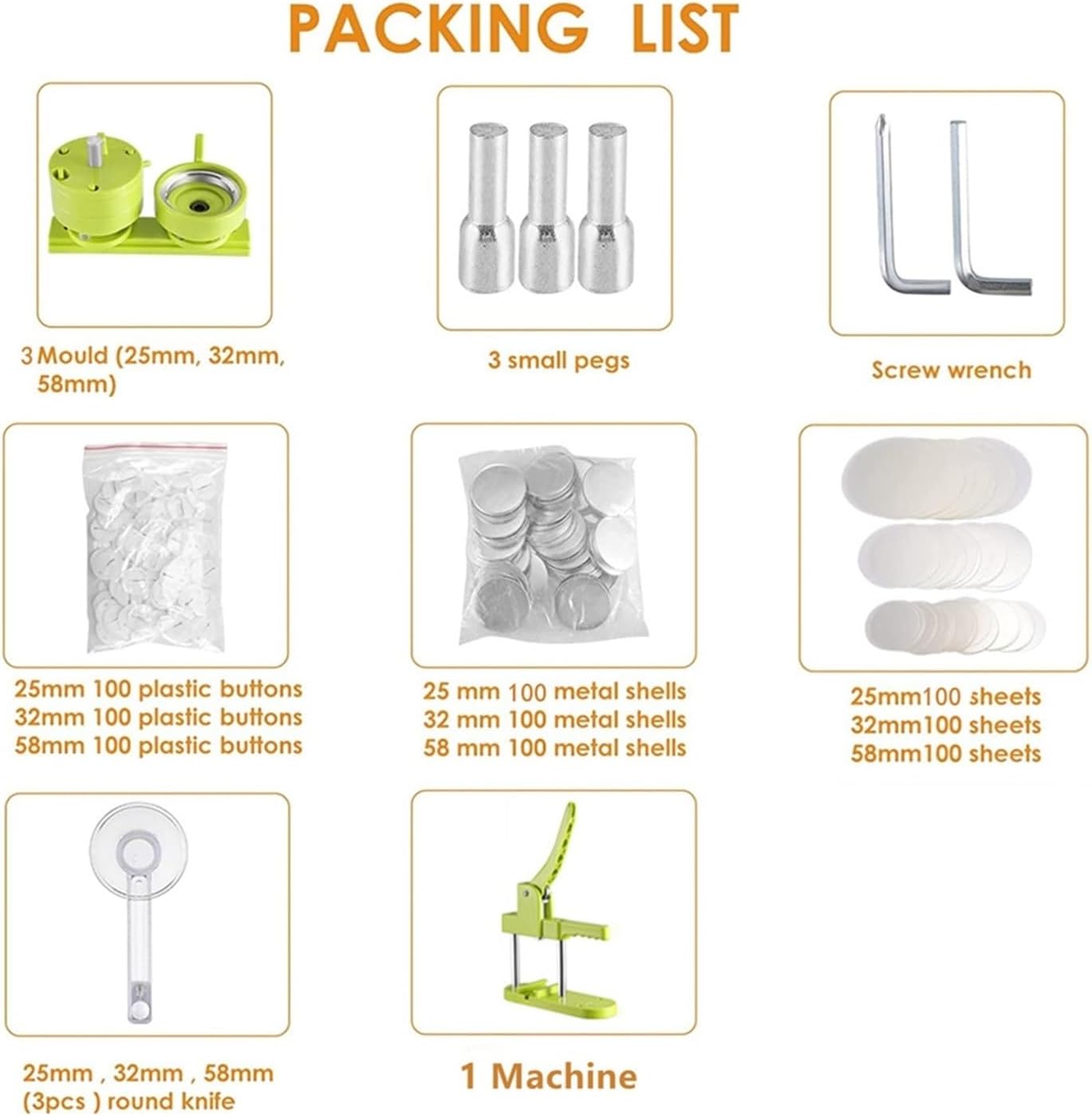 Materiale: plastica, metallo Colore: verde/blu/rosa Dimensioni: 25/32/58 mm Peso: 3,5 kg Forma: rotonda