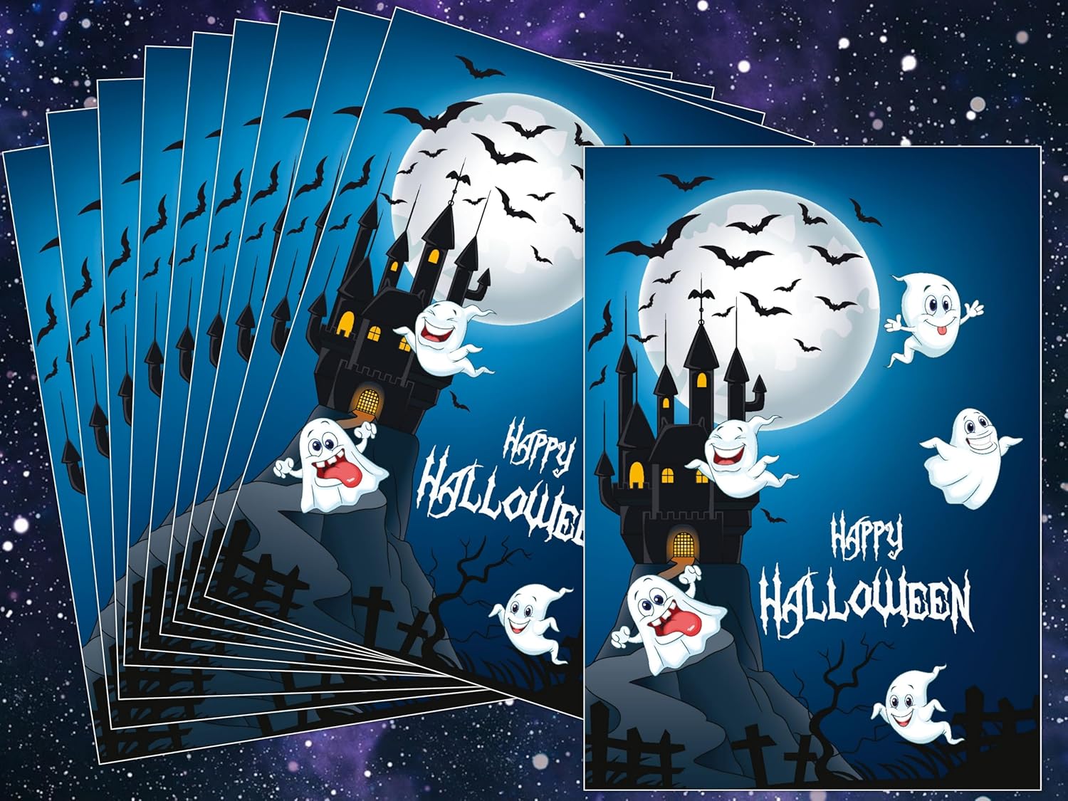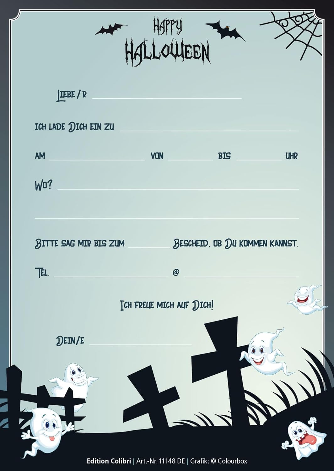 Invito ideale: invita a una festa di Halloween! Con questo bellissimo e amichevole invito a fantasmi, anche i bambini dell'asilo e dei bambini della scuola elementare (ragazzi e ragazze) possono invitare alla festa di Halloween. Biglietti d'invito per bambini di Halloween, 3,4,5,6,7,8 anni Unici: questi biglietti d'invito fantasma sono l'accessorio ideale per feste o decorazioni perfette per una festa spaventosa. Possono essere facilmente distribuiti a scuola o in associazione come pensierino o inviati per posta. Il formato è DIN A6 (14,8 x 10,5 cm) Qualità speciale: i nostri biglietti d'invito sono realizzati in Germania (prodotti in Germania) e sono realizzati in cartone resistente. Le cartoline sono rifinite con una vernice UV di alta qualità e brillano in modo bello e di alta qualità. Facile da compilare: grazie al pratico formulario è facile compilare i campi vuoti. Il retro opaco può essere scritto con le penne comuni, un ricordo indimenticabile per ogni amico, vicino, colleghi o adolescenti. Buona fatto/sostenibilità: i biglietti sono ordinati e confezionati a mano dai laboratori di formato per disabili, in Germania. La produzione è rispettosa del clima. Inoltre, piantiamo oltre diecimila alberi ogni anno.