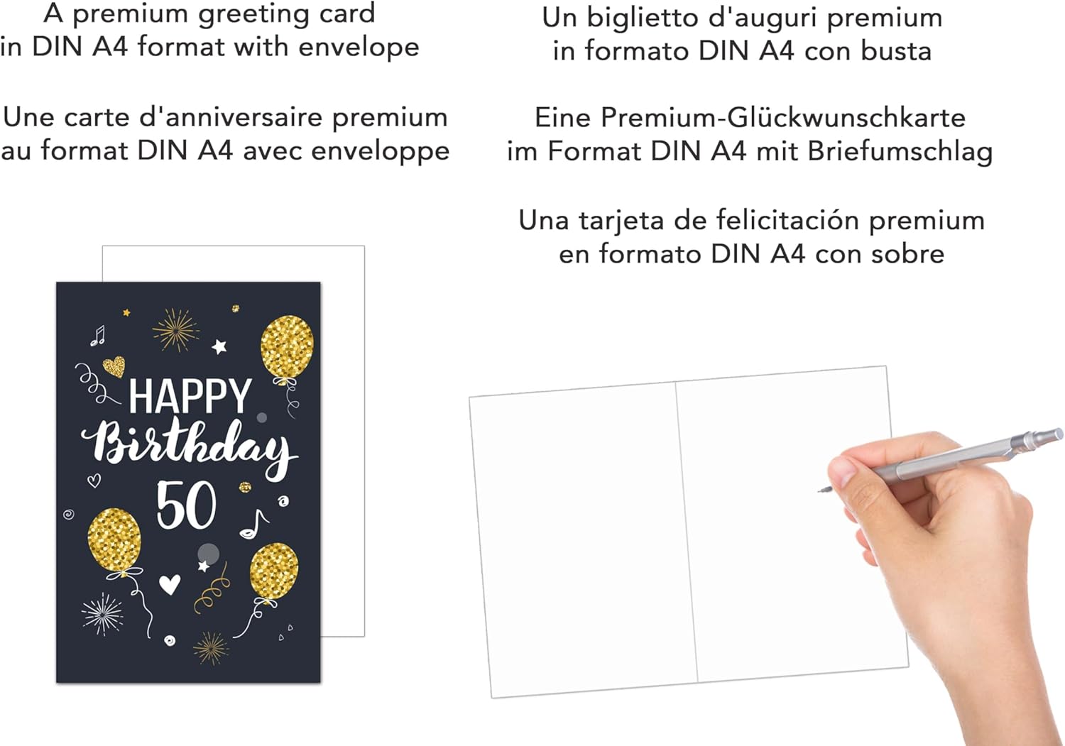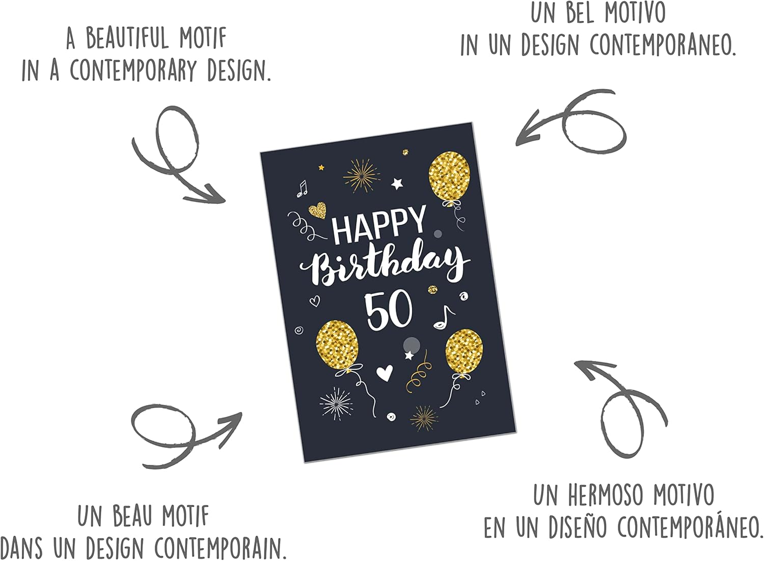 ⭐️ Incomparabile: un biglietto di auguri per il 50° compleanno di alta qualità per i più esigenti. Bellissimo biglietto che esprime un apprezzamento speciale. ⭐️ Alta qualità: il formato del biglietto è DIN A4 29,7 x 21,0 cm. Il biglietto viene fornito con una busta colorata abbinata. Carta di alta qualità stampata in Germania. Stampa offset di alta qualità. Qualità superiore. Questa è una carta doppia/carta pieghevole senza testo all'interno. ⭐️ Design innovativo: il nostro giovane team creativo progetta le carte con tanto amore per un design bellissimo. ⭐️ Seidel Verlag ... stabiliamo le tendenze. Si prega di visualizzare anche le nostre altre carte e assortimenti. Grazie mille.