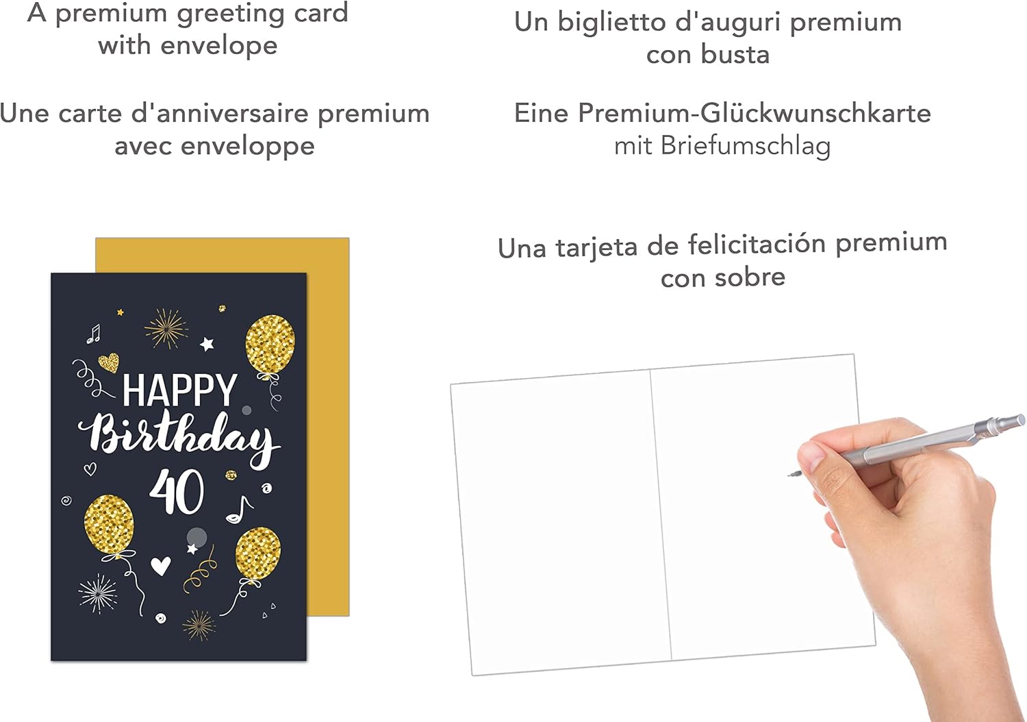 ⭐️ Incomparabile: un biglietto di auguri per il 40° compleanno di alta qualità. Bellissimo biglietto che esprime un apprezzamento speciale. ⭐️ ALTA QUALITÀ: la dimensione della carta è 11,5 x 17,0 cm. Il biglietto viene fornito con una busta colorata abbinata. Carta di alta qualità stampata in Germania. Stampa offset di alta qualità. Qualità superiore. Si tratta di un biglietto doppio/carta pieghevole senza testo interno. ⭐️ Design innovativo: il nostro giovane team creativo progetta le carte con tanto amore per un design bellissimo. ⭐️ Seidel Verlag ... stabiliamo le tendenze. Si prega di visualizzare anche le nostre altre carte e assortimenti. Grazie mille.