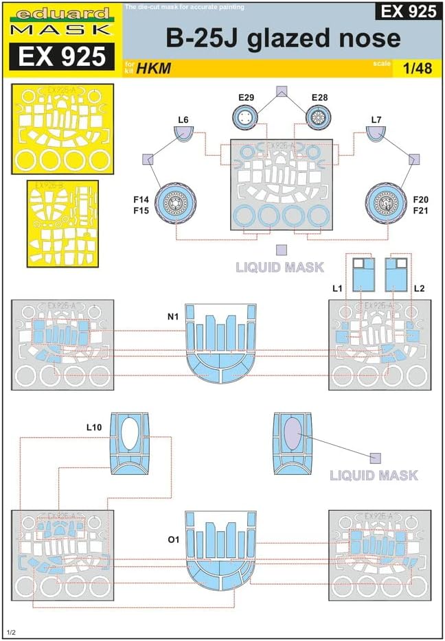 Sprue Brothers Eduard 1:48 Maschera – B-25J Mitchell Glazed Nose (HKM kit), EDUEX925