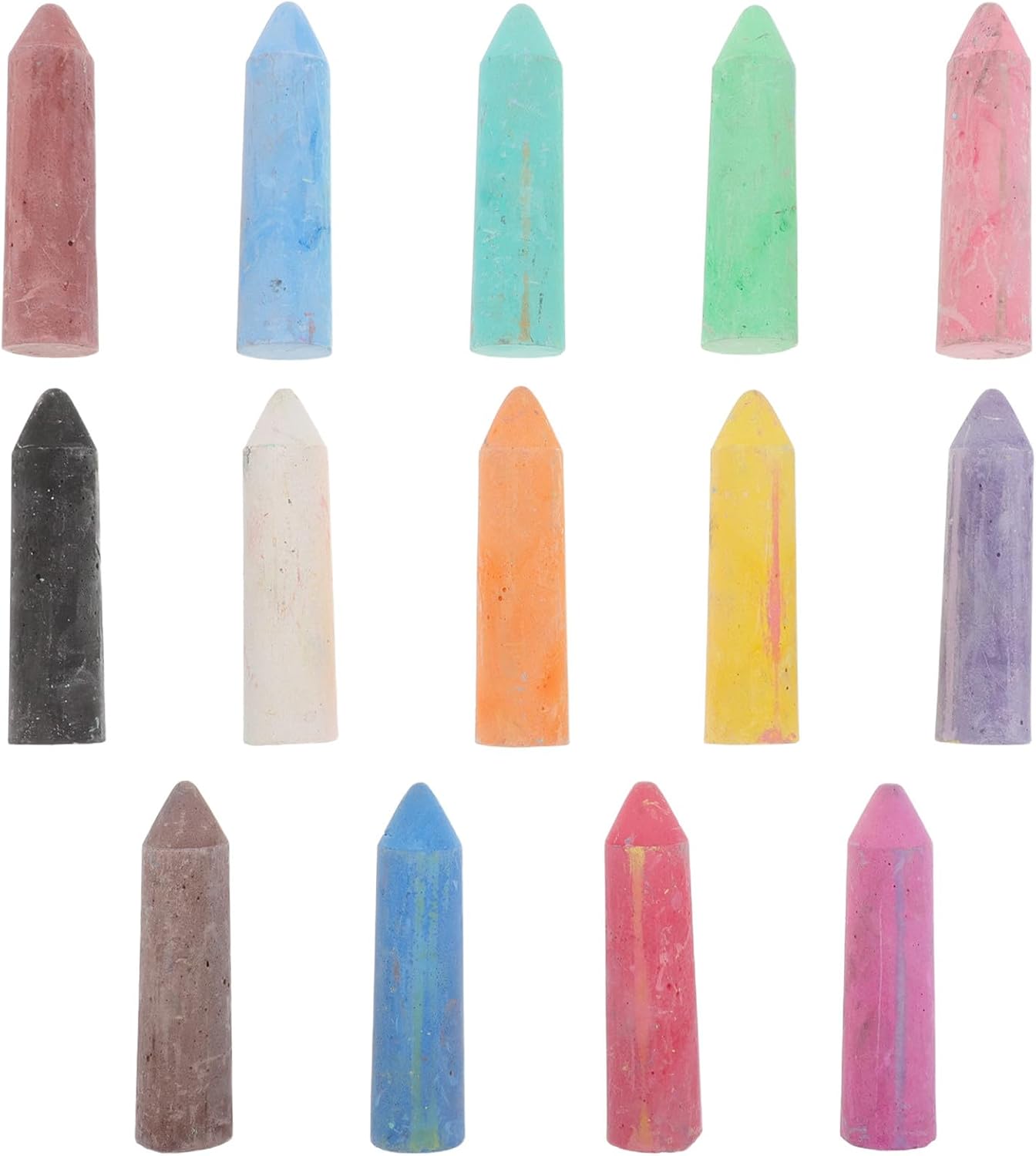 15 pezzi in secchiello 7 colori: Rosso, Giallo, Blu, Verde, Viola, Bianco e Marrone Spessa e resistente Dimensioni: gesso: Ø 2,3 x 9,5 cm