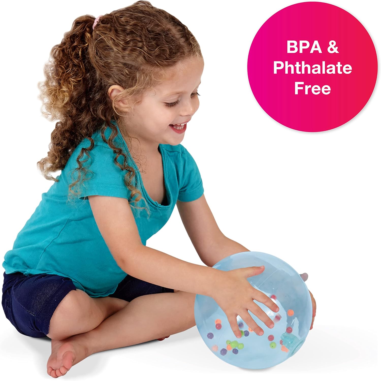 Sfera sensoriale trasparente unica. Include mini perline colorate all'interno della palla. Crea affascinanti effetti visivi quando viene agitato. Diametro: 18 cm. Adatto a partire da 6 mesi.