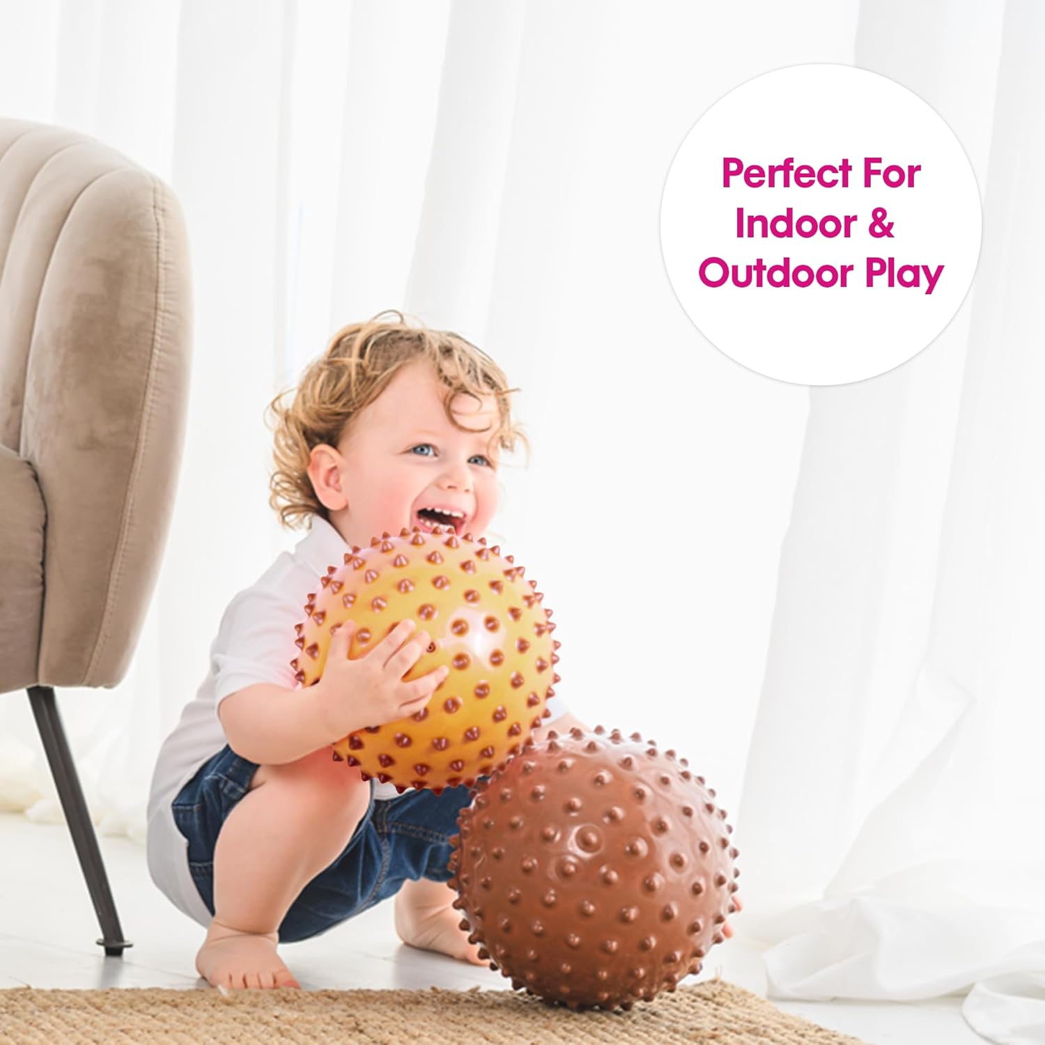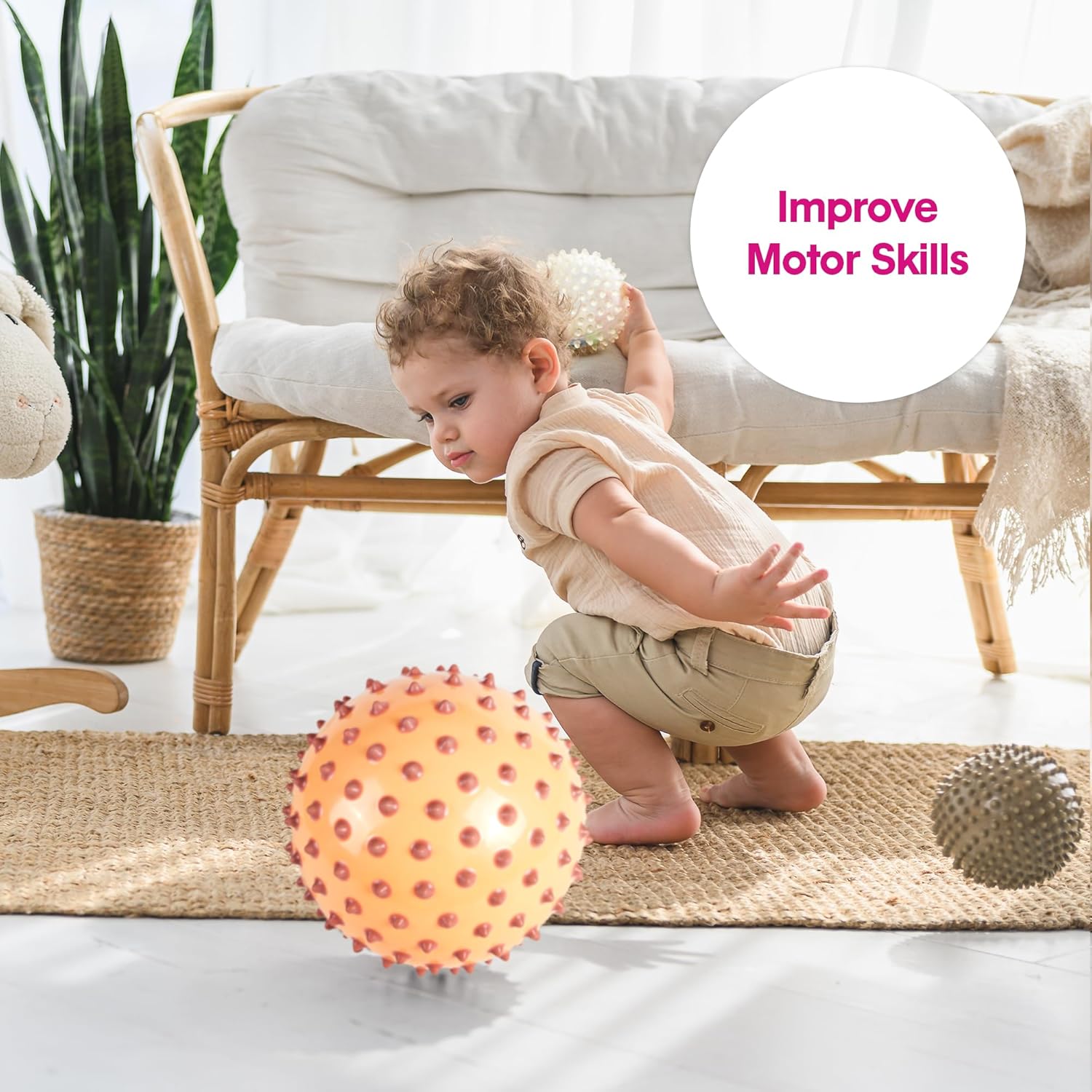 Migliora le abilità motorie: giocare a grandi sfere sensoriali di Edushape migliora le capacità motorie grossolane dei bambini. Queste palline per bambini incoraggiano a gattonare e afferrare migliorando l'equilibrio e la coordinazione dei bambini. Sviluppa i sensi: lascia che il tuo bambino esplori i propri sensi con l'aiuto delle nostre palline sensoriali per bambini. Questa palla per bambini promuove un desiderio naturale di raggiungere, toccare, sperimentare diverse trame, forme e colori vivaci. Alta qualità e presa facile: le palline sensoriali Edushape per bambini sono prive di BPA e ftalati, sono morbide sulla pelle del bambino e sono della dimensione giusta per le loro manine da impugnare Regalo perfetto: questo set di giocattoli per bambini è in una confezione facile da avvolgere ed è un regalo adatto per ogni occasione. La nostra collezione di palline per bambini comprende varie forme e dimensioni per un set che cresce e si sviluppa con il bambino. Cosa c'è dentro: un set include una sfera sensoriale Boho Chic Cream da 17,8 cm per bambini da 1 a 3. Le nostre palline per lo sviluppo del bambino sono fornite completamente gonfiate ma possono essere gonfiate tramite una valvola integrata. Consigliato per bambini dai 6 mesi in su