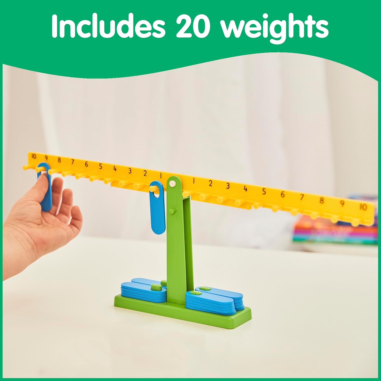 Adattabile a molti concetti matematici - Insegna STEM con questo comprovato strumento matematico che sfrutta la potenza di una bilancia per esplorare concetti matematici e relazioni tra numeri, equivalenti e operazioni come parte di un curriculum STEM Algebra precoce: gli studenti iniziano a visualizzare le prime equazioni algebriche mentre bilanciano i numeri equivalenti su entrambi i lati Matematica pratica: dai ai bambini una pausa dalle matite con questo pratico sussidio didattico. Gli studenti adoreranno manipolare i pesi mentre calcolano i problemi di matematica Aiuto visivo: usa i pesi per dimostrare operazioni e numeri equivalenti bilanciando la scala a forma di T Costruito per durare: realizzato in plastica resistente, questo set di travi di equilibrio resisterà all'uso in classe Edizione per studenti - Misura 14 pollici di altezza, questa versione da scrivania è perfetta per qualsiasi studente da usare da solo o in piccoli gruppi Ottimo rapporto qualità-prezzo - Bilancia matematica per studenti inclusa 20 pesi per l'apprendimento individuale o di gruppo