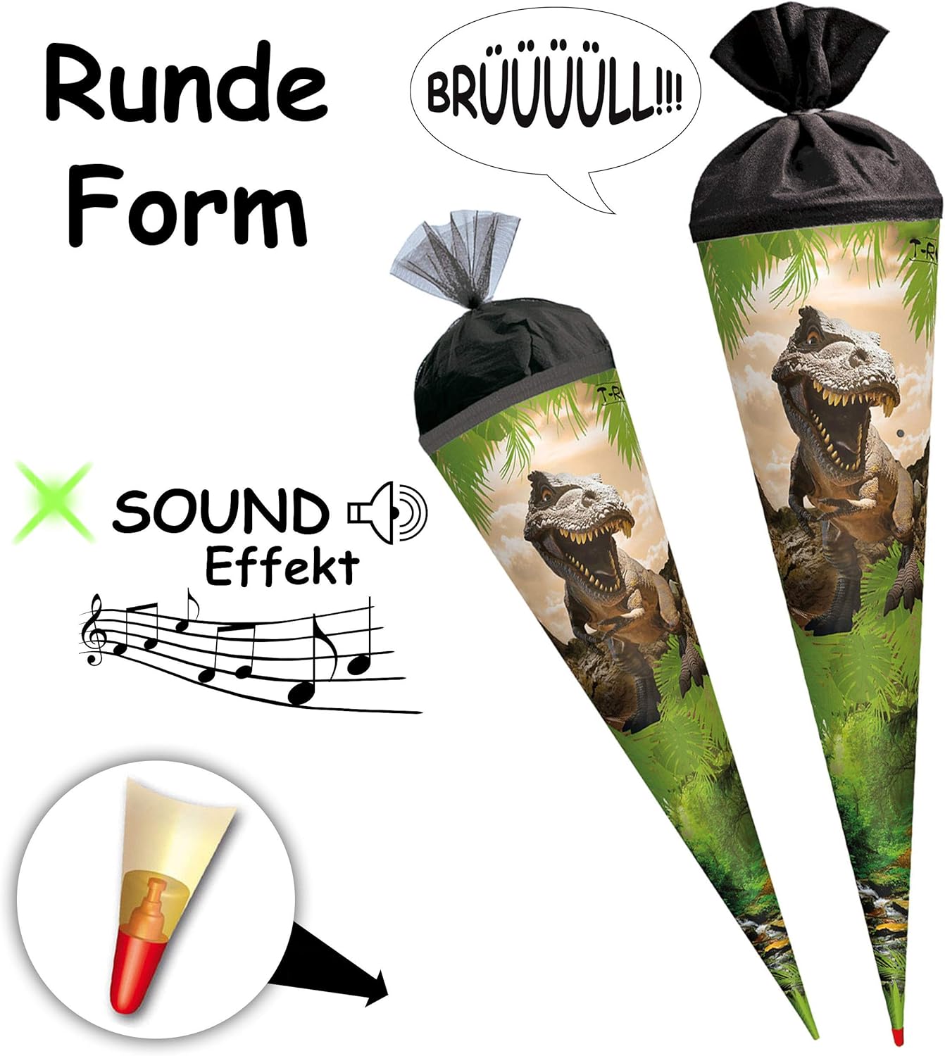| Material | hochwertiger & beschichteter Karton - SUPER Stabil ! - wasserabweisender Druck __ tolle Druckfarben ! __ mit Tüllabschluß, edlem Organza - oder Filzabschluß / Form: RUND oder - 6 ECKIG ___ je nach Wunsch - mit / ohne - coolem SOUND Effekt ! ( bei Knopfdruck ertönen tolle Dinosaurier Geräusche - z.B. BRÜLLEN __ für gewisse Zeit ) !! __ 70er; 85er und 100er Schultüten haben eine fest eingearbeitete, langlebige & sehr stabile Holzspitze ( original von Roth ) _____ hergestellt in Deutschland ! |
