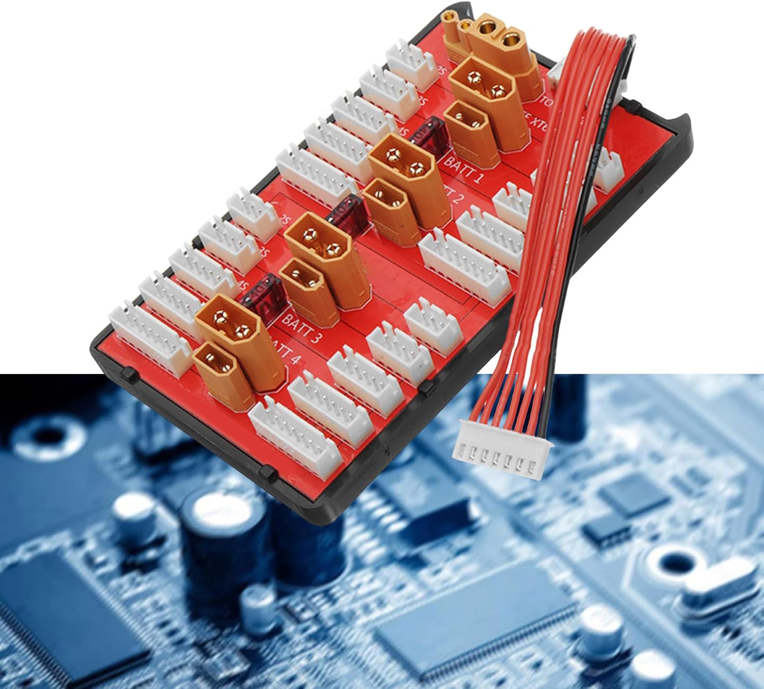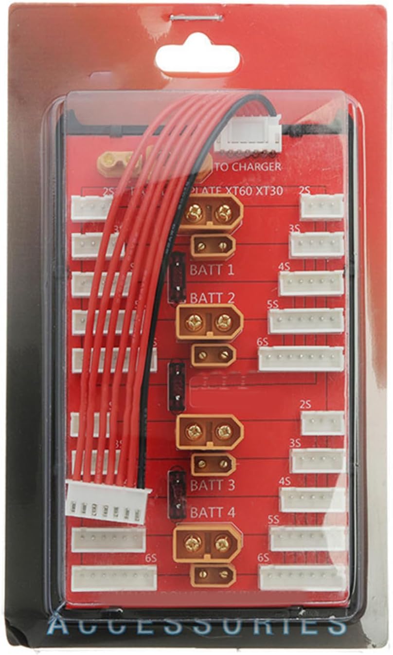 Questa scheda riduce i frequenti cambi di batteria e riduce significativamente i tempi di ricarica Per appassionati, appassionati di modelli e giocatori professionisti, questa scheda di ricarica parallela semplifica la gestione della batteria consentendo la ricarica simultanea di più batterie Pellicola ramata che supporta una corrente di carica fino a 35 A, questo accessorio trasforma la ricarica consentendo una gestione sicura ed efficiente dell'alimentazione per le tue esigenze elettroniche Dispone di connettori placcati in oro e design durevole per una ricarica efficiente La scheda di ricarica parallela XT60 XT30 2 in 1 supporta fino a quattro pacchi batteria 2-8S dello stesso tipo e numero di celle