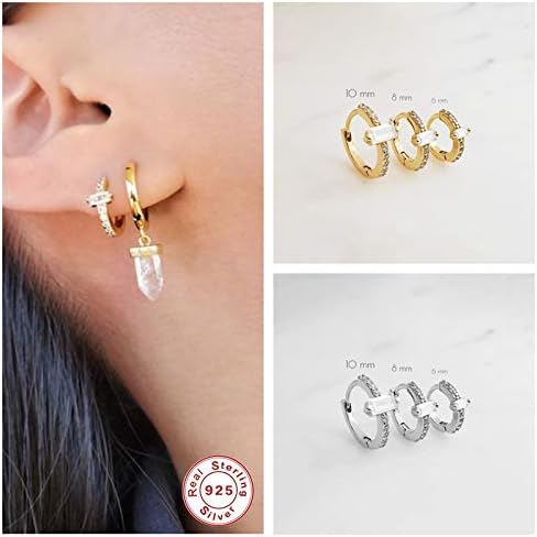 Eh 2PCS 925 Sterling Silver Piercing Piercients Bling CZ orecchino a Cerchio per Le Donne Ragazza 6mm / 8mm / 10mm Orecchini Cerchio Rotondo Orecchini Orecchini Gioielli YC629