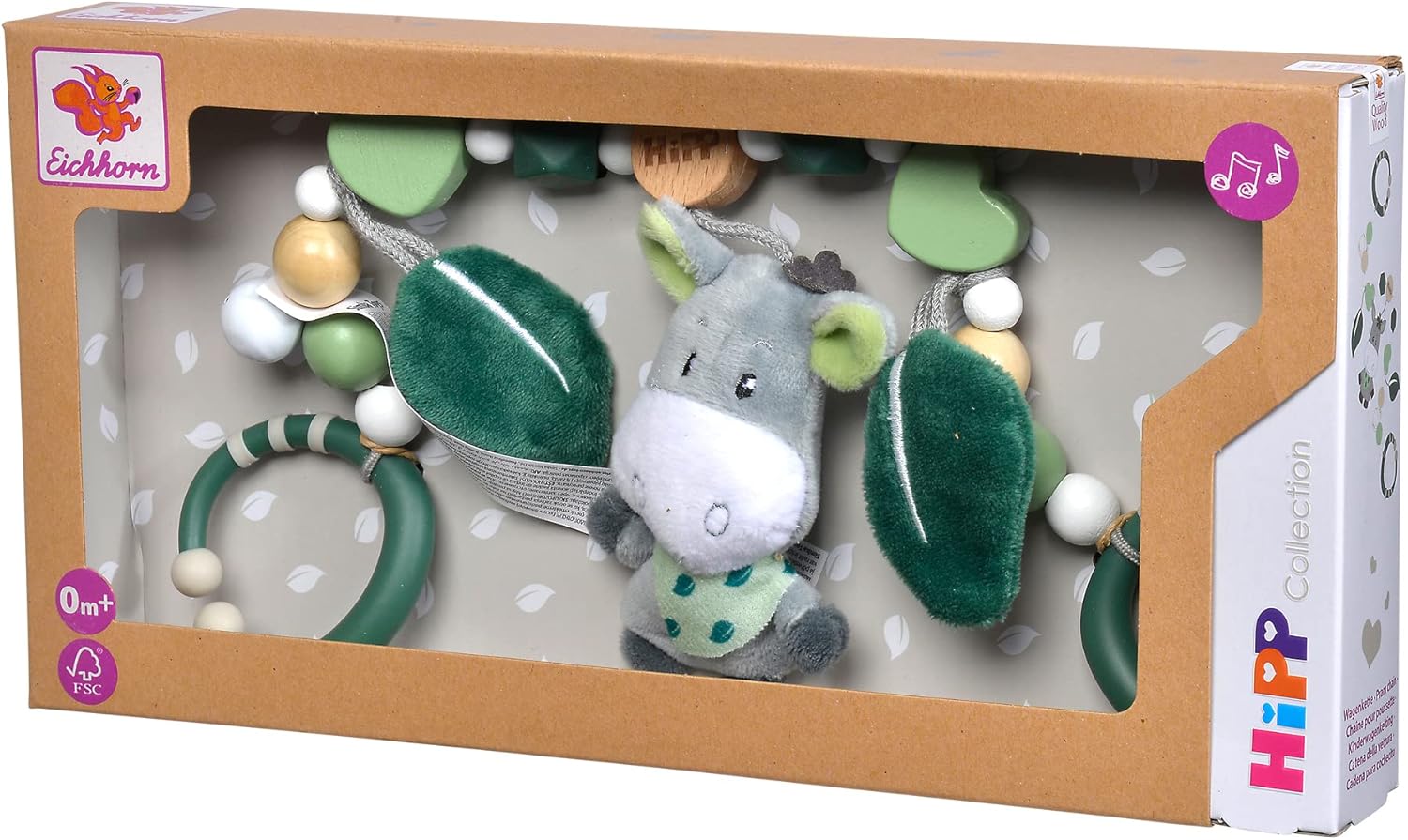 Vari stimoli sensoriali: la catena del carro combina campanelli che suonano delicatamente, morbidi elementi di peluche a forma di animali e una varietà di perle tattili per scoperte emozionanti. Stimola i sensi: la combinazione di elementi in legno e silicone e il morbido peluche supportano in modo giocoso la percezione tattile e visiva. Facile da fissare: perfetta per passeggini o seggiolini per bambini, la catena lunga 43 cm fornisce una presa sicura e offre intrattenimento in movimento. Rispettosa dell'ambiente e affidabile: realizzata in legno di faggio certificato FSC al 100%, la catena per trolley è sinonimo di sostenibilità e massima qualità. Eichhorn – Giocattoli in legno con tradizione – Produciamo giocattoli in legno di qualità da oltre 75 anni. Preziosi dal punto di vista educativo, i nostri prodotti promuovono le capacità motorie e la creatività fin dalla prima infanzia attraverso una combinazione di sensazione, impilamento, incollaggio, spinta e avvitamento.