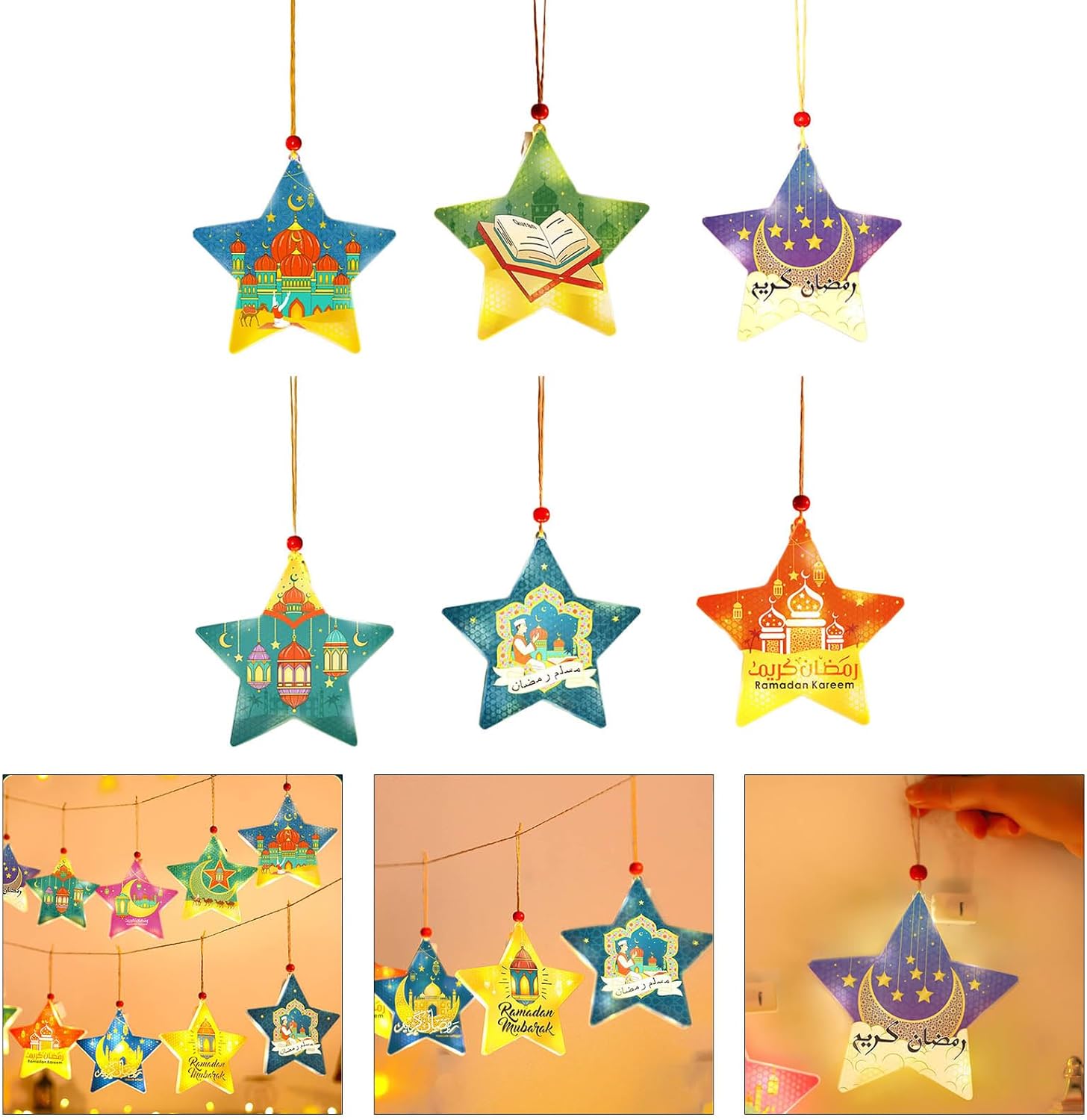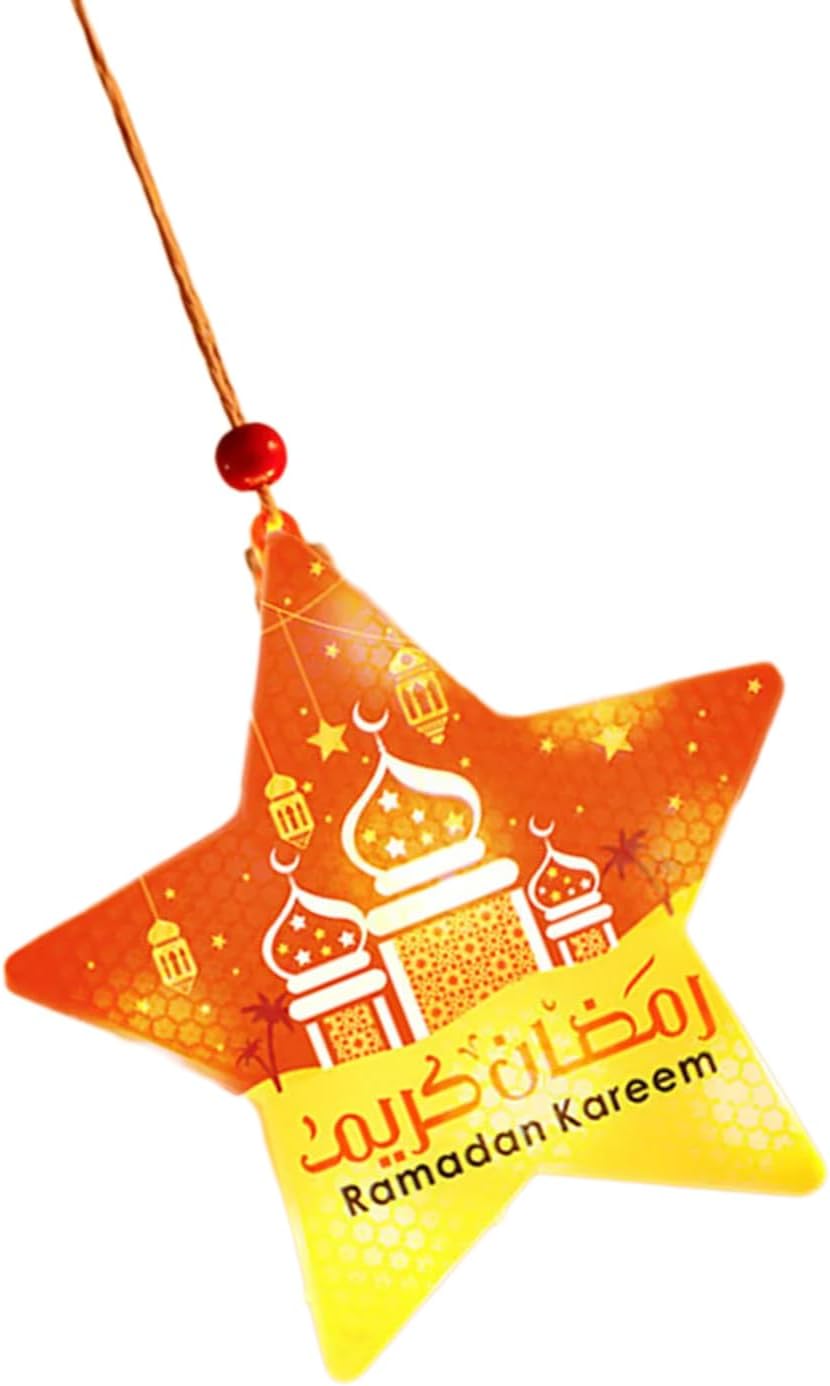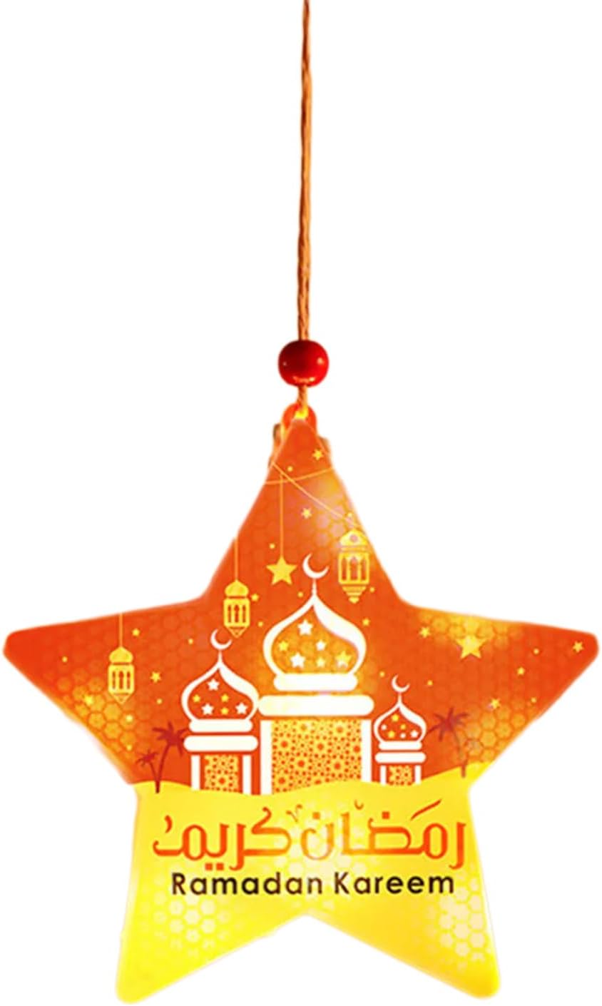 Perfettamente adatto per Eid e altre decorazioni per festival mediorientali, può essere utilizzato anche per matrimoni, anniversari, riunioni di famiglia o eventi speciali, aggiungendo un tocco di calore e invitante in qualsiasi ambiente Questa lampada decorativa a sospensione a forma di stella è ideale sia come centrotavola per feste che come regalo significativo Realizzata in PVC, questa lampada decorativa presenta una struttura stabile, leggera, garantendo durata e resistenza alla deformazione o alla rottura. 3 batterie LR44 alimentate (batterie non incluse) Migliora il tuo festival Eid con l'ornamento della lampada a LED a forma di stella, decorazione unica da appendere a LED che migliora il festival e aggiunge un tocco di eleganza alla tua celebrazione Eid Ideale per famiglie e persone che apprezzano la cultura araba e hanno bisogno di una lampada da scrivania decorativa unica