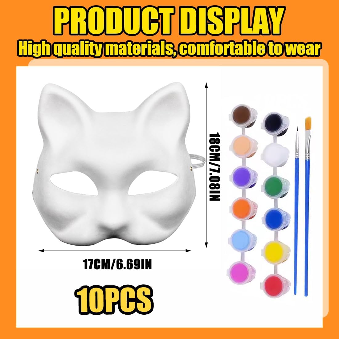 Materiali di Alta Qualità: queste maschere per gatti vuote fai-da-te sono realizzate in polpa naturale di alta qualità, riciclabile, leggera, sicura e resistente. Più divertimento fai-da-te: la maschera bianca è perfetta per dipingere fai da te con l'immaginazione. Progetta la tua maschera unica. Inoltre, crea bellissimi lavoretti per i bambini da disegnare e decorare durante le lezioni d'arte. Taglia universale: questa dimensione di maschera di carnevale si adatta alla maggior parte delle forme del viso, quindi non devi preoccuparti di non poterla indossare. Queste maschere di polpa sono adatte sia per adulti che per bambini. Contenuto della confezione: La confezione contiene 10 maschere per gatti vuote fai-da-te e vernici per pennelli, sufficienti per soddisfare le tue esigenze fai-da-te. Ampia Applicazione: queste maschere verniciabili sono adatte per feste a tema Halloween, progetti artistici e artigianali, carnevali, feste in maschera, giochi di ruolo, giochi, feste di compleanno e altro ancora.