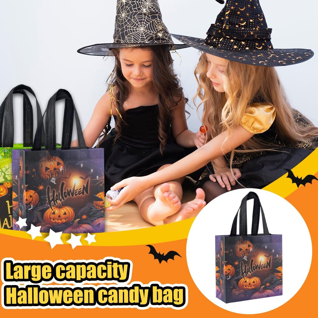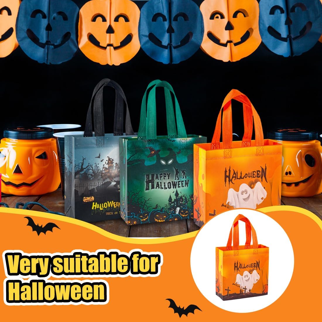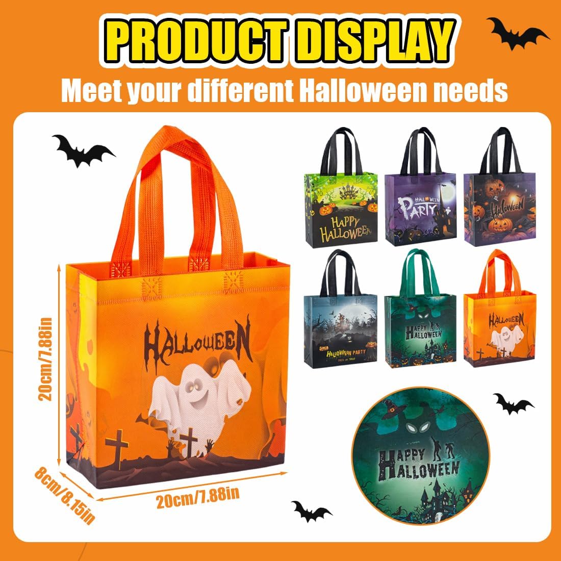 Contenuto della confezione: questo set contiene 6 sacchetti di Halloween che misurano 20*20 cm con colori vivaci e motivi di Halloween, perfetti per Halloween. Questo sacchetto di caramelle di Halloween ha una grande capacità e può contenere vari oggetti come caramelle, regali, giocattoli e altro ancora. Materiali di alta qualità: questa borsa regalo di Halloween è realizzata in tessuto non tessuto di alta qualità, resistente all'umidità e durevole, rendendolo perfetto per Halloween! Design della borsa della spesa: questa borsa per caramelle di Halloween presenta un design a borsa più largo e più spesso, che la rende facile da trasportare senza legare le mani. Utilizzo versatile: non contiene solo caramelle e giocattoli, ma può anche essere utilizzato per riporre oggetti in casa, oggetti di artigianato, decorazioni natalizie o addirittura riutilizzato come borsa della spesa ecologica. Adatto per feste di Halloween, eventi scolastici, feste a tema e altre occasioni, soddisfa facilmente le esigenze del festival! REGALO PERFETTO: questo sacchetto di caramelle di Halloween è un'ottima scelta per i regali di Natale, sia che venga regalato ai bambini come regalo a sorpresa o agli amici come souvenir della festa.